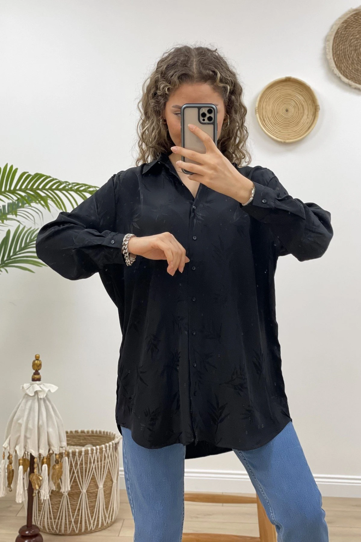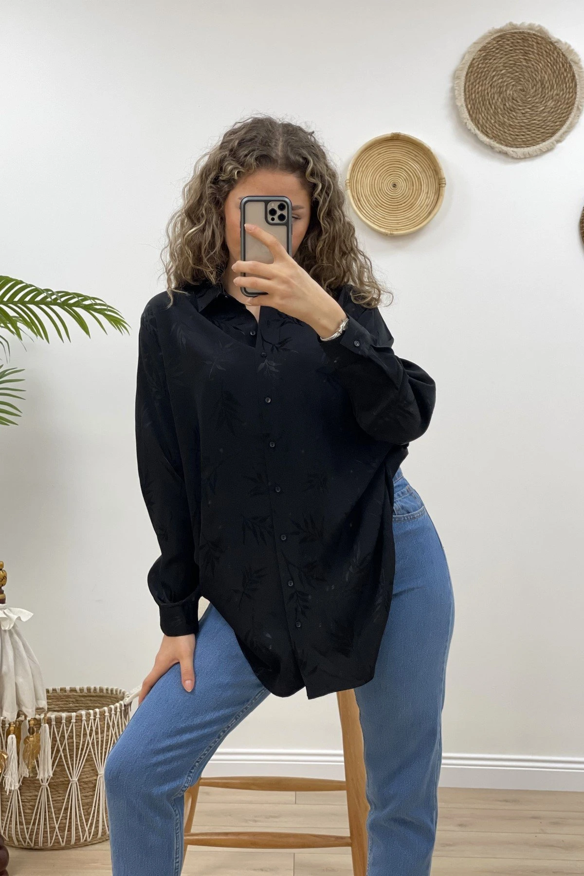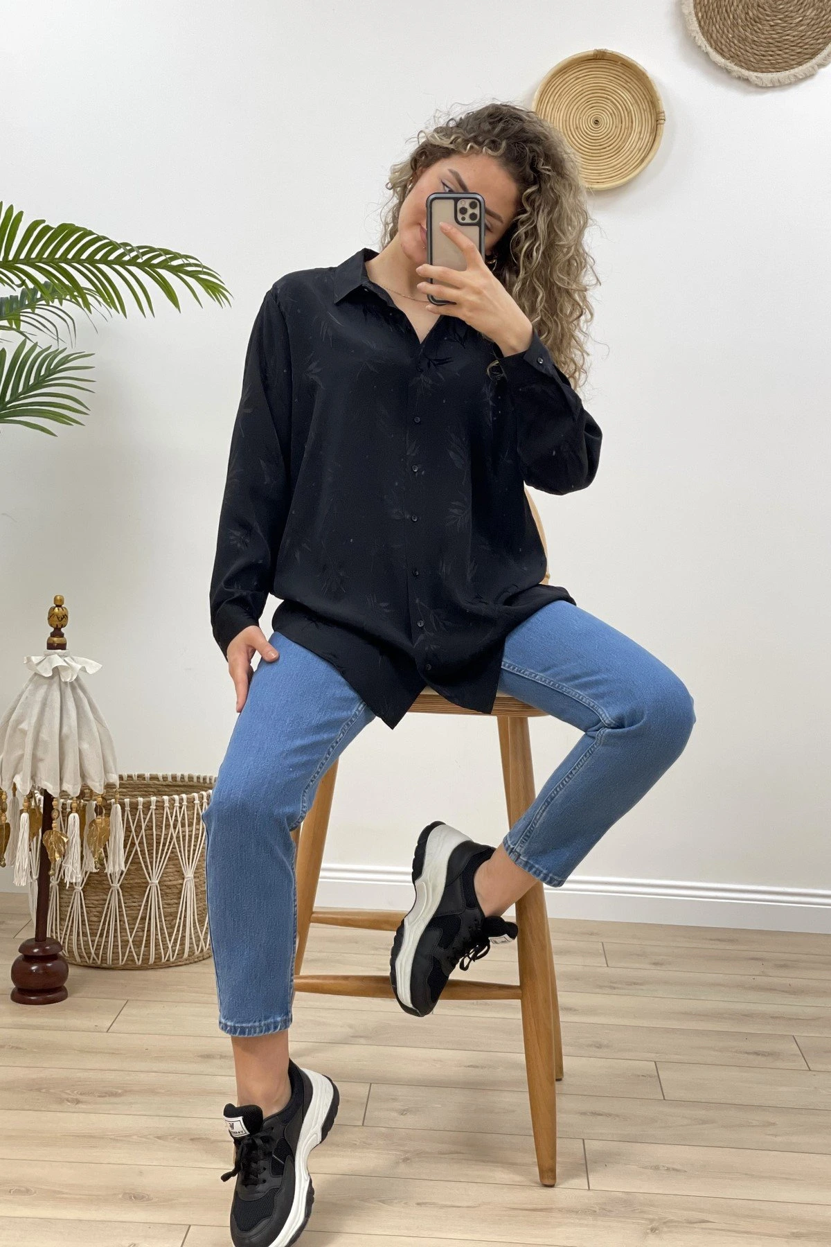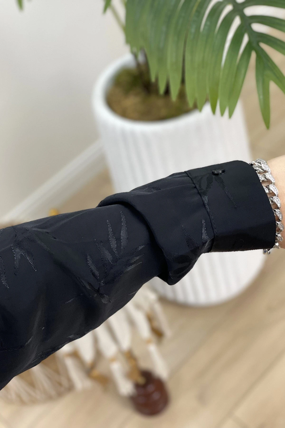 YAPRAK DESEN GÖMLEK – SİYAH