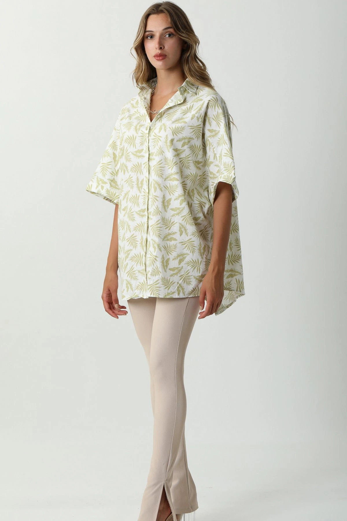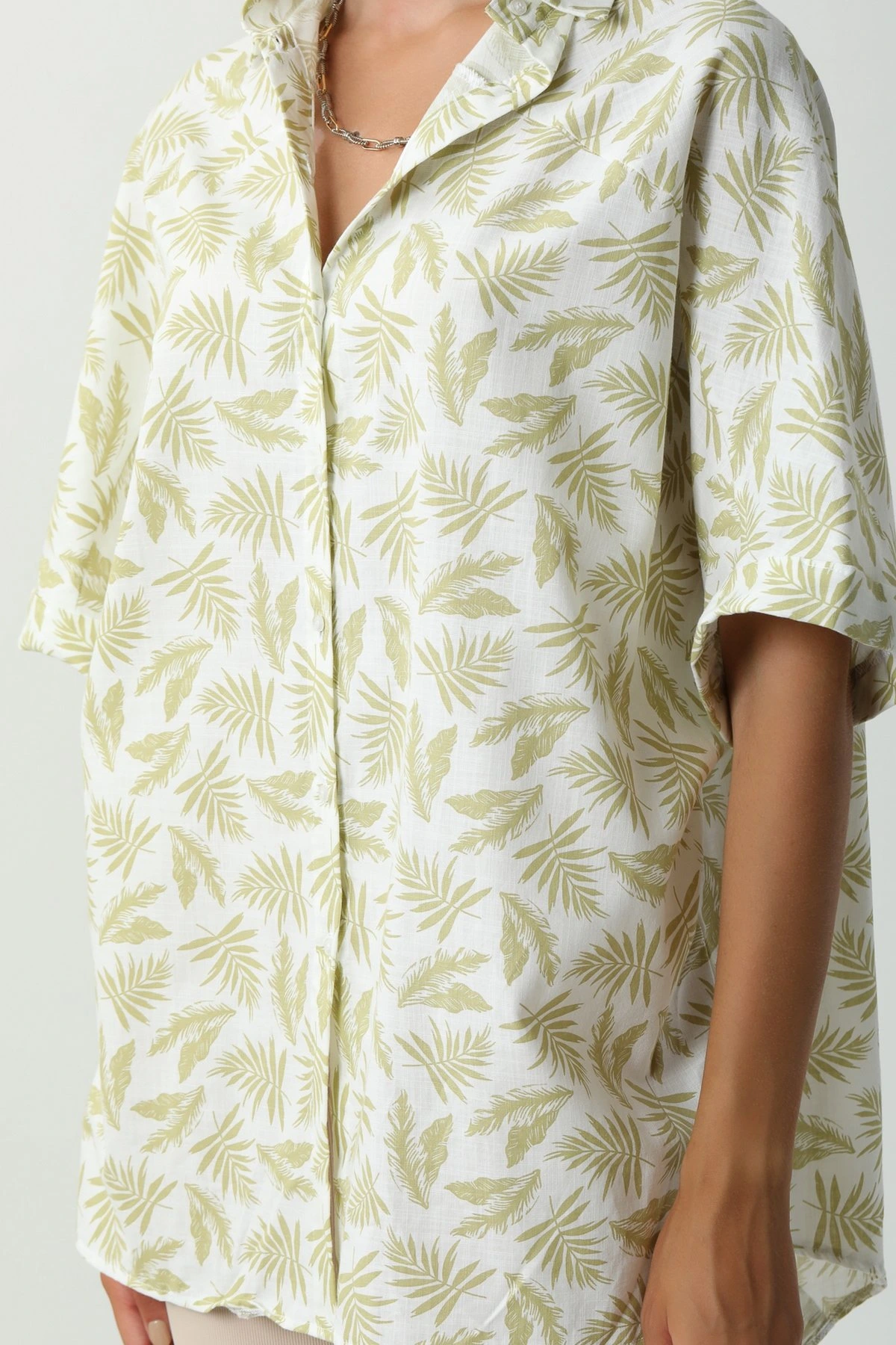 YAPRAK DESEN SIRT PENCERE GÖMLEK – EKRU-YEŞİL