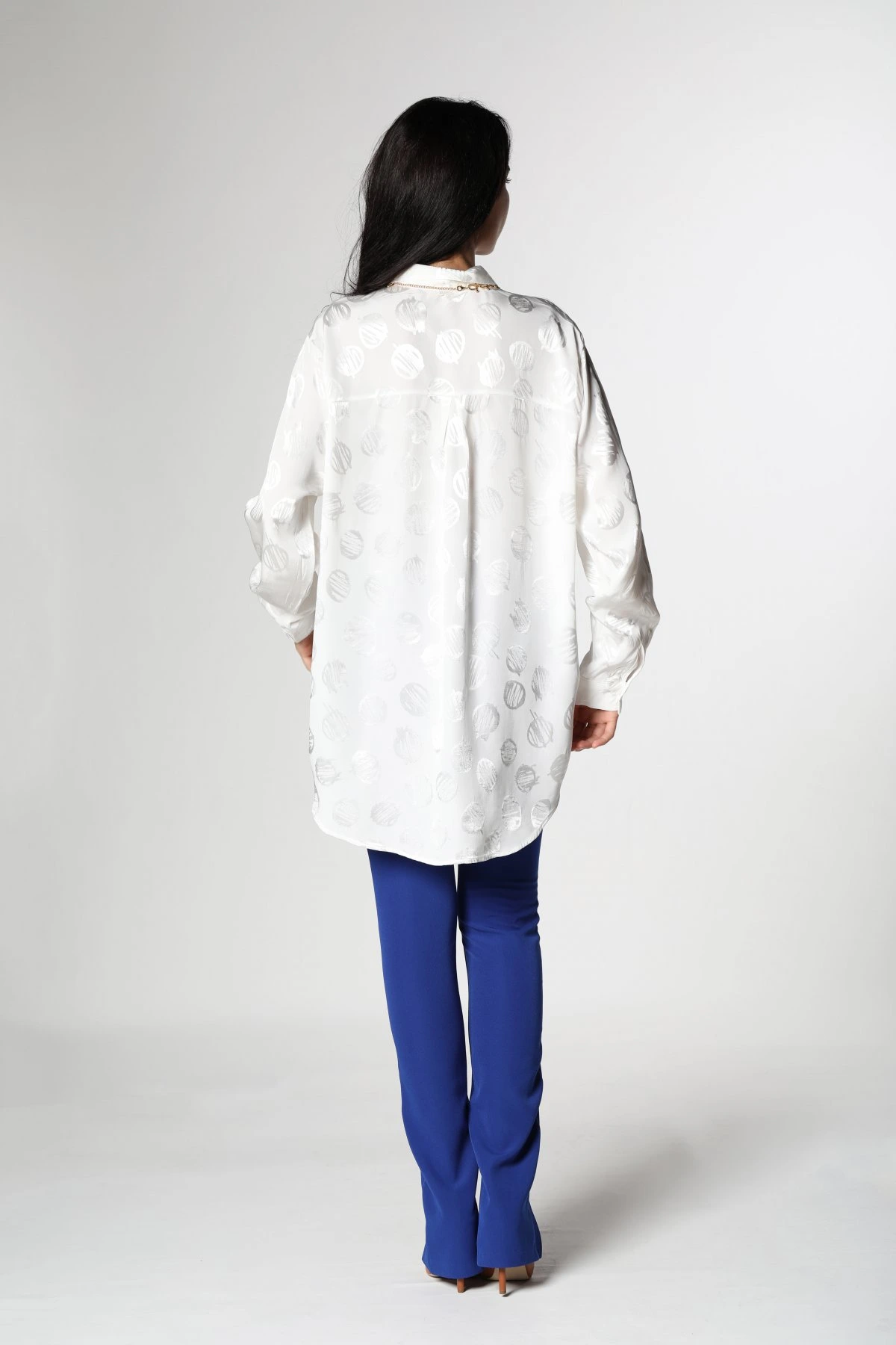 YUVARLAK DESEN SATEN GÖMLEK – BEYAZ