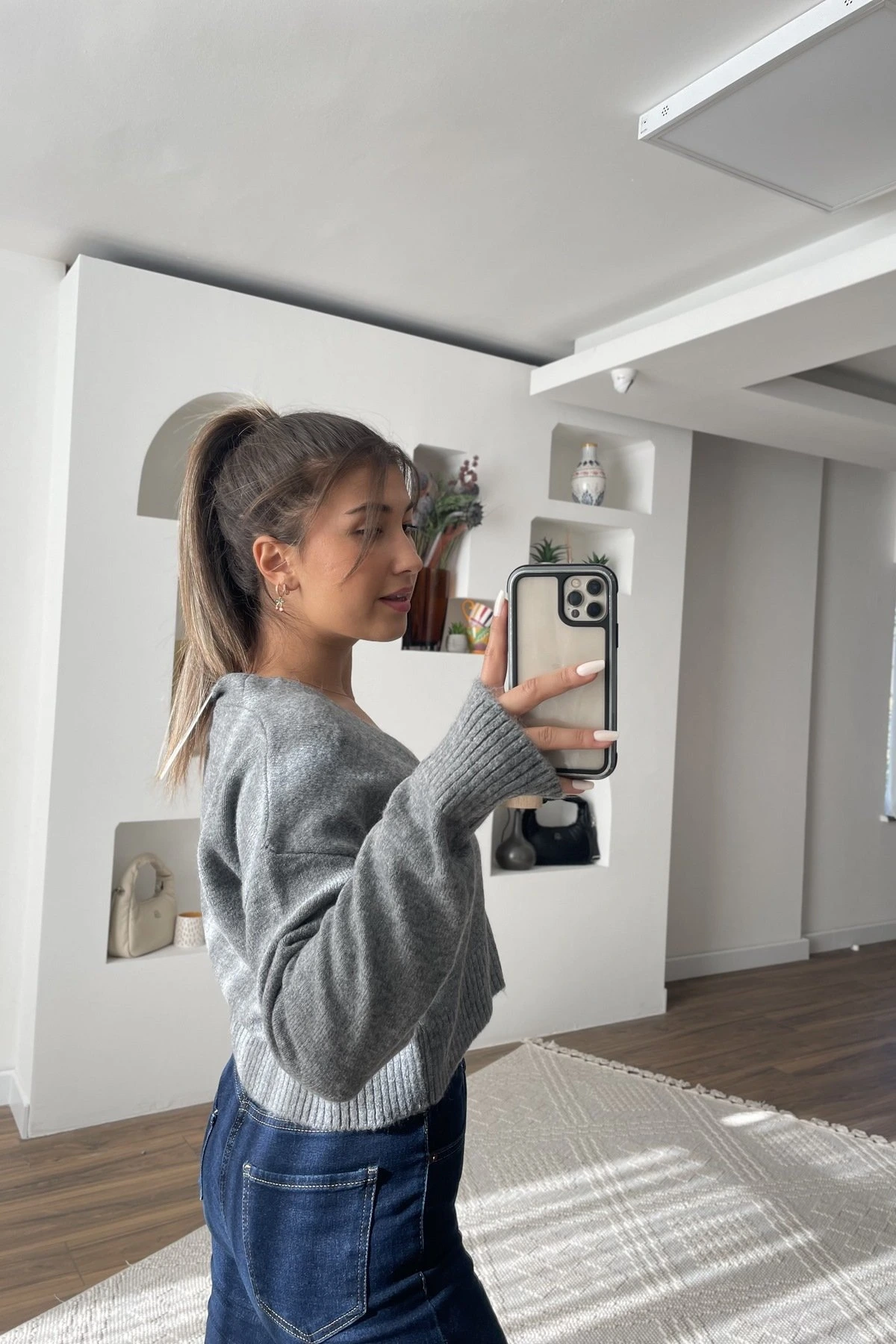 3 KEMİK DÜĞME SALAŞ KISA HIRKA – GRİ