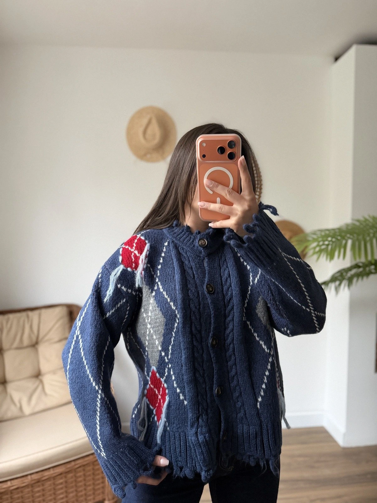“BAKLAVA DESEN DİK YAKA SAÇAKLI HIRKA – İNDİGO” için yorum yapan ilk kişi siz olun Yanıtı iptal et