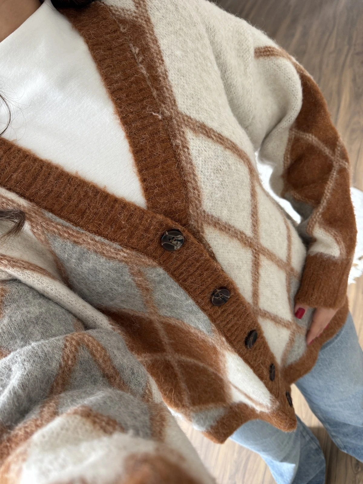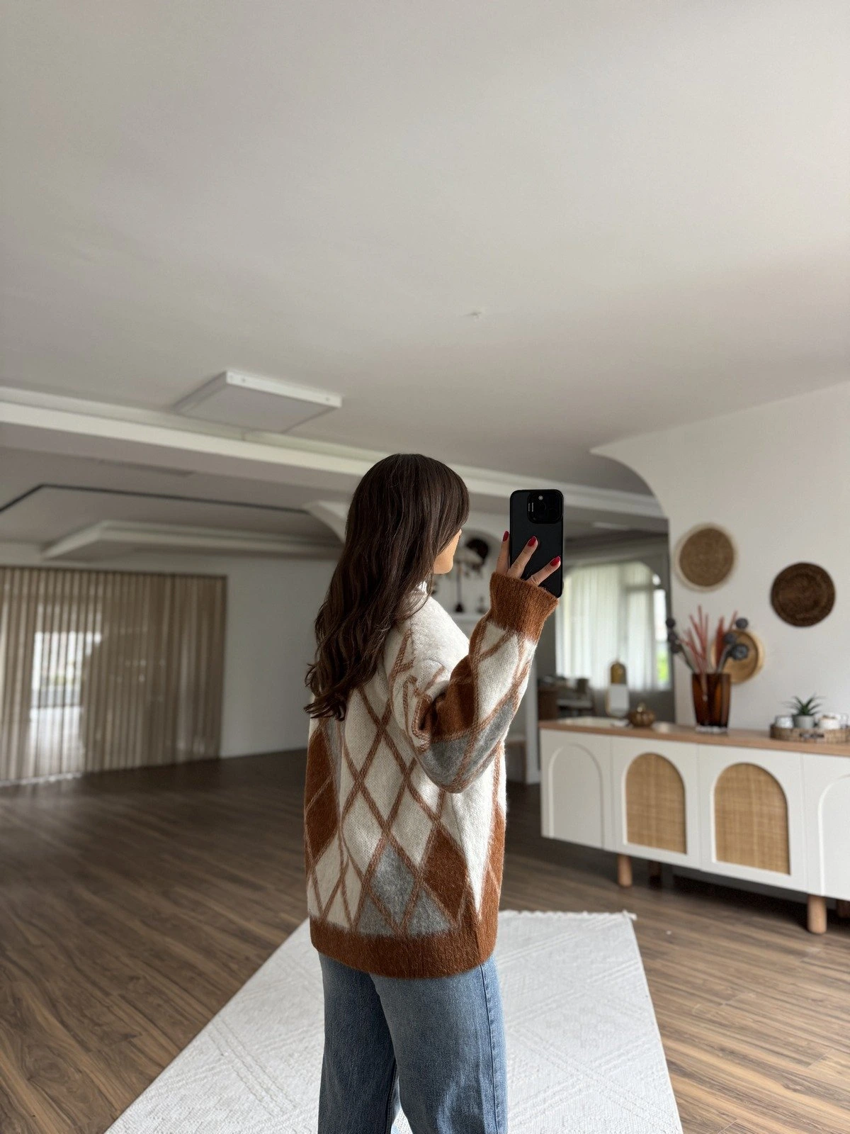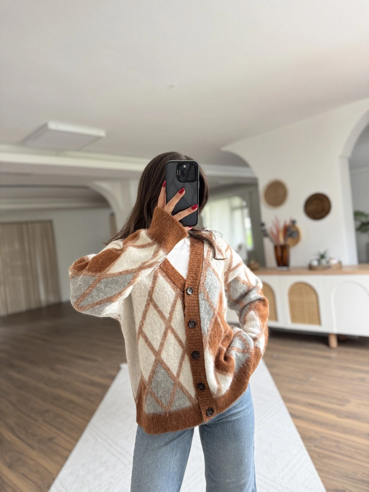 BAKLAVA DESEN ŞARDONLU ALPAKA KARIŞIM HIRKA – KARAMEL