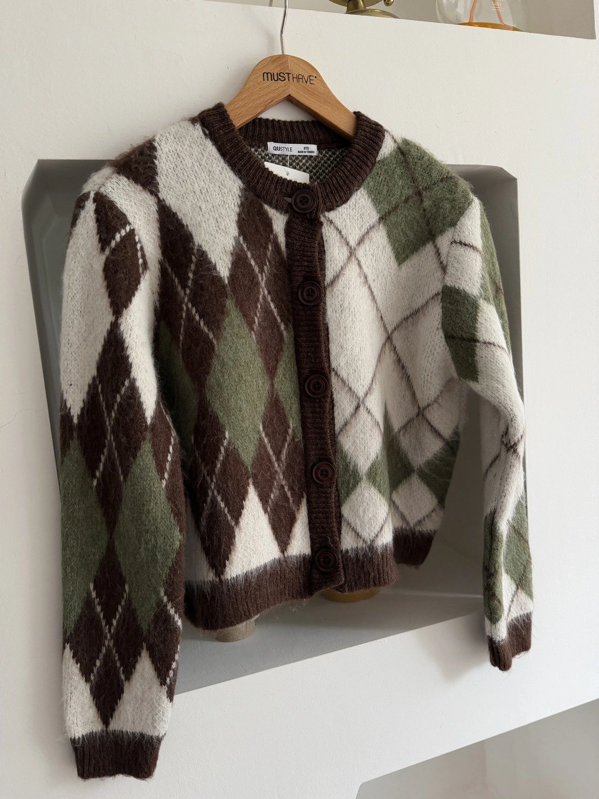 BAKLAVA DESEN ŞARDONLU DÜĞMELİ HIRKA – KAHVE KREM