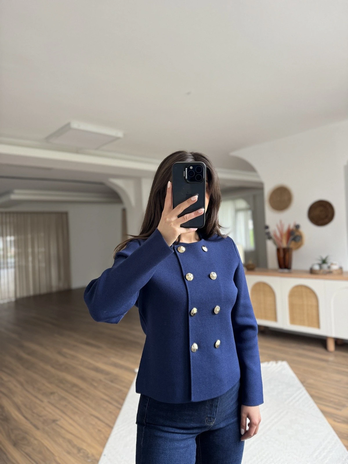 BİSİKLET YAKA DÜĞMELİ VİSKON HIRKA – LACİVERT