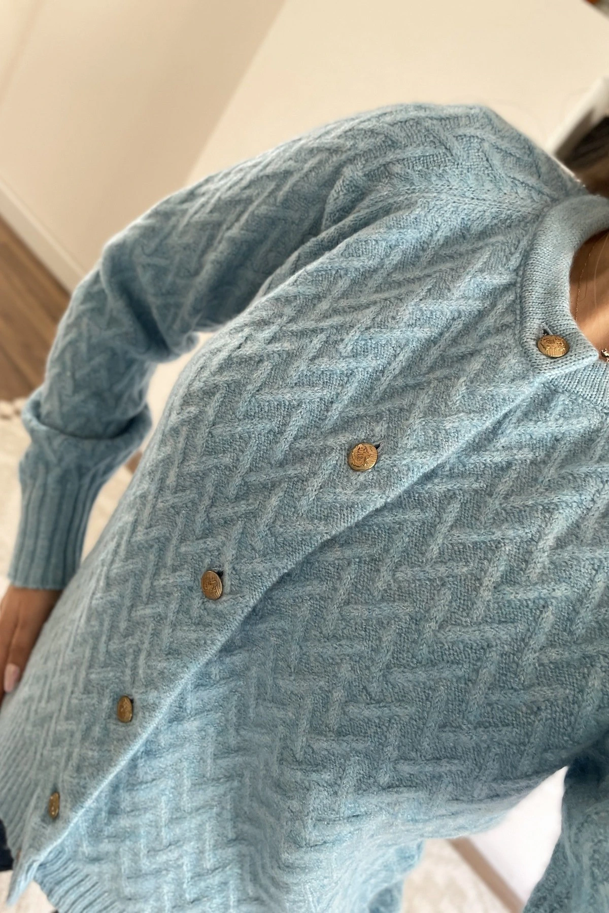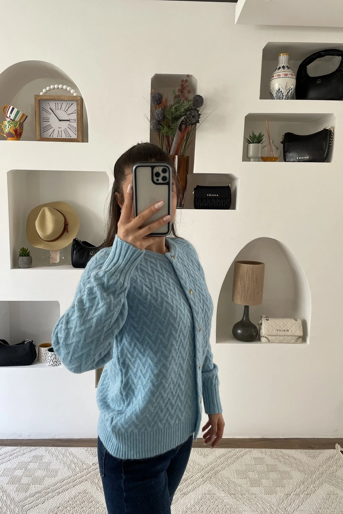 BİSİKLET YAKA GOLD DÜĞME VİSKON KARIŞIM HIRKA – BEBE MAVİ