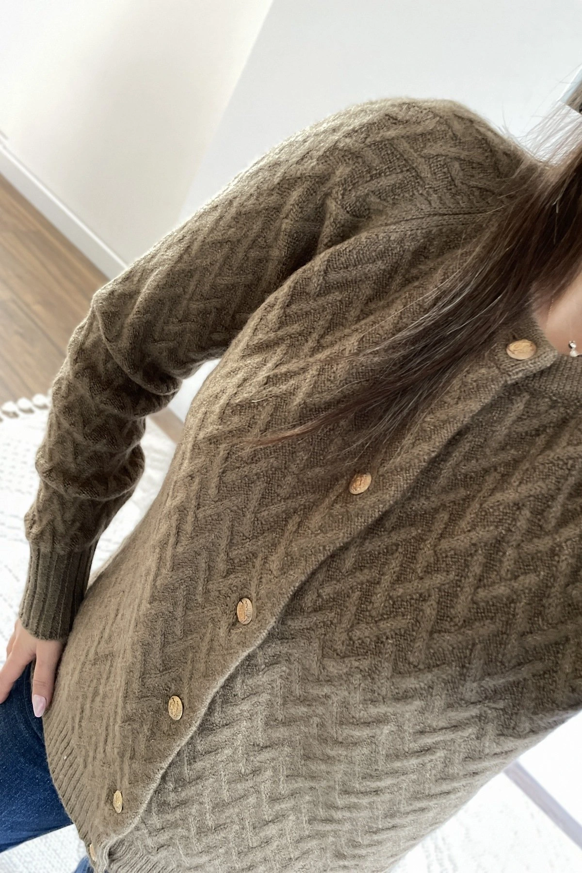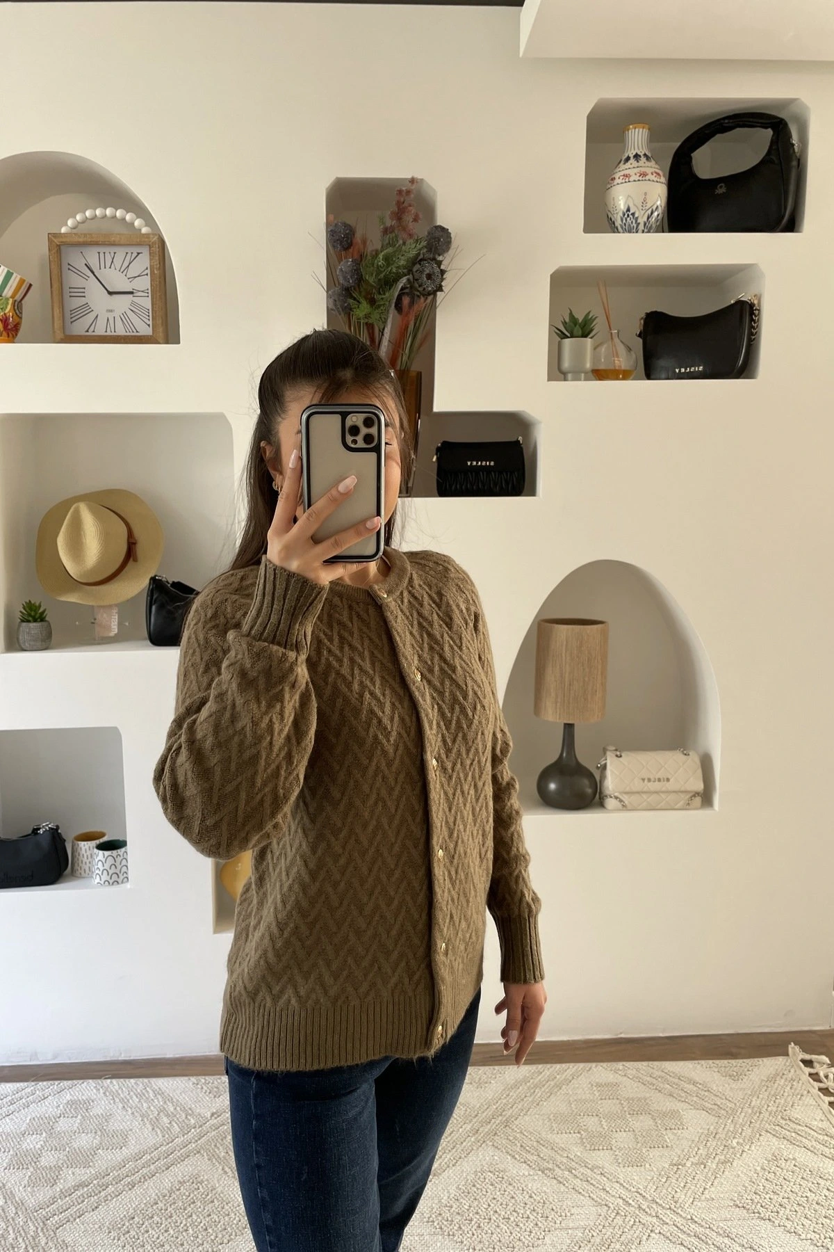 BİSİKLET YAKA GOLD DÜĞME VİSKON KARIŞIM HIRKA - KOYU HAKİ