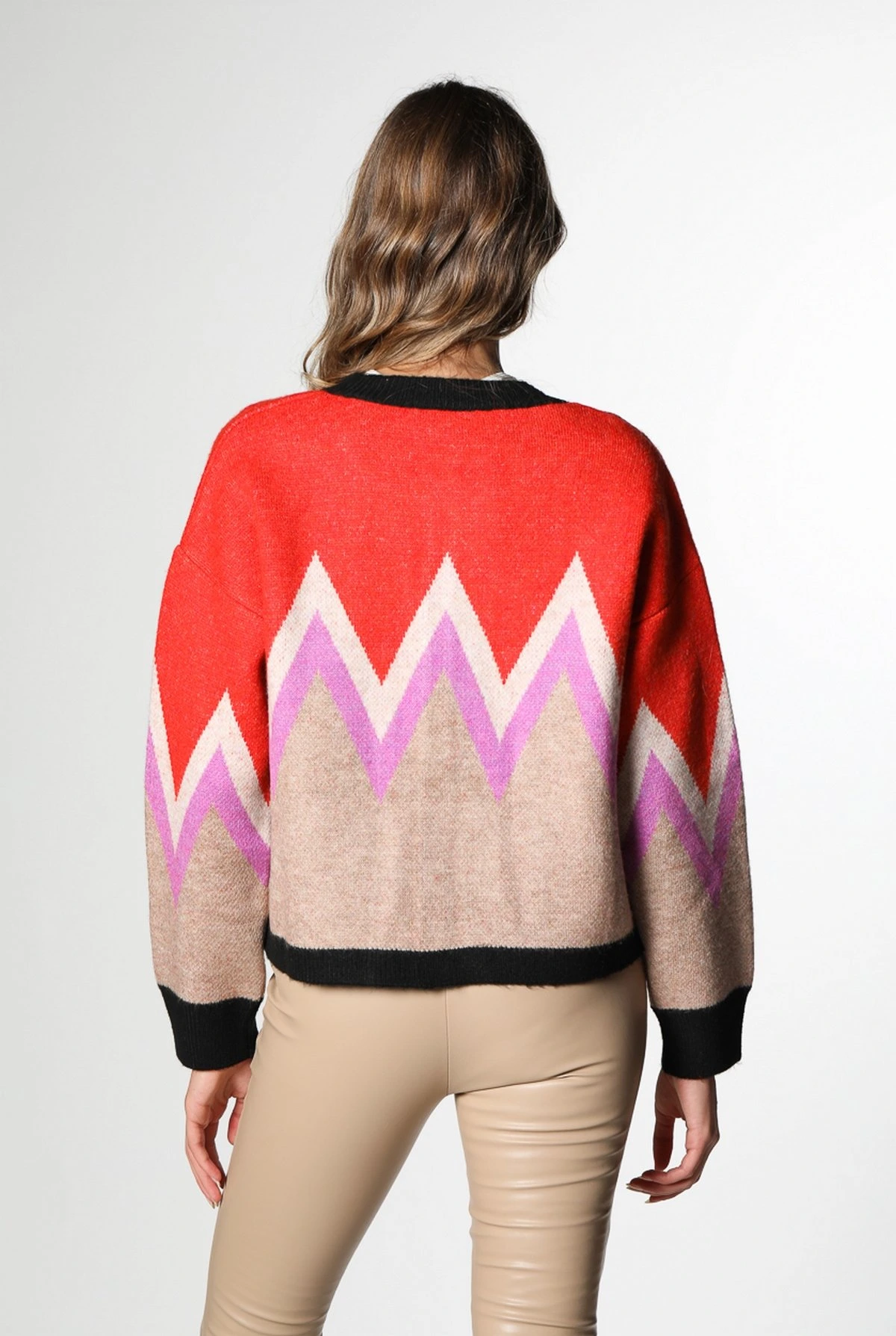 BİSİKLET YAKA RENKLİ HIRKA – KIRMIZI