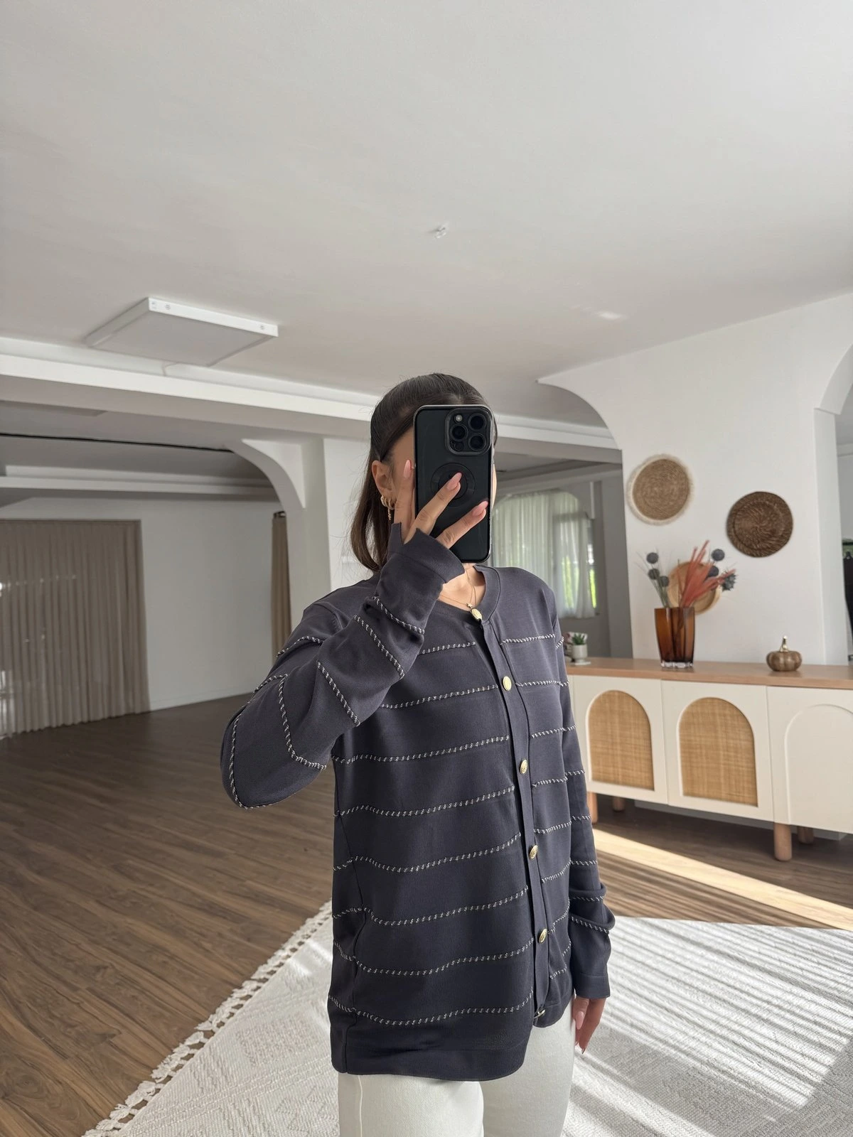 BURGU SİM DETAY GOLD DÜĞME VİSKON HIRKA – ANTRASİT
