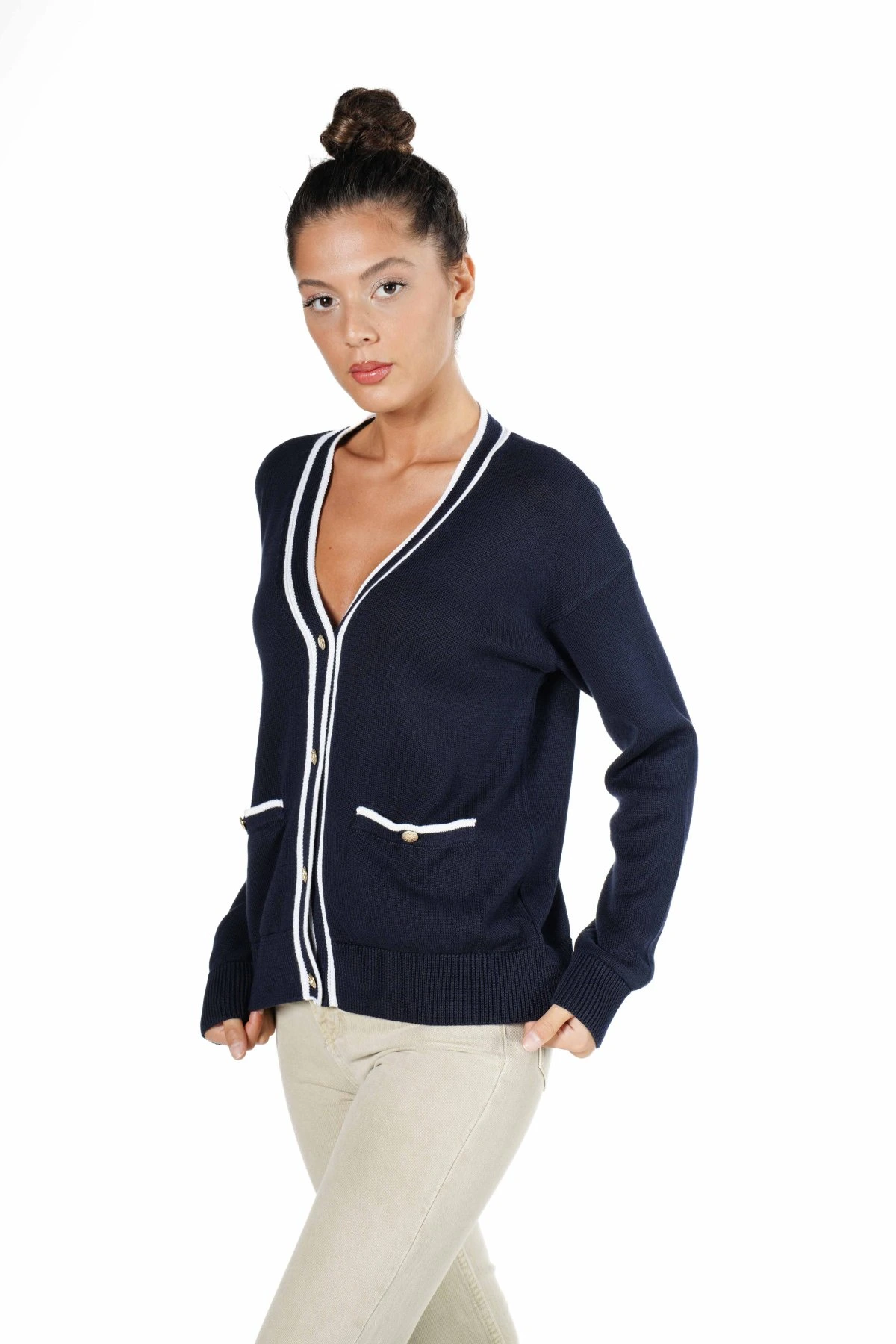CEPLİ GOLD DÜĞME PAMUK HIRKA – LACİVERT