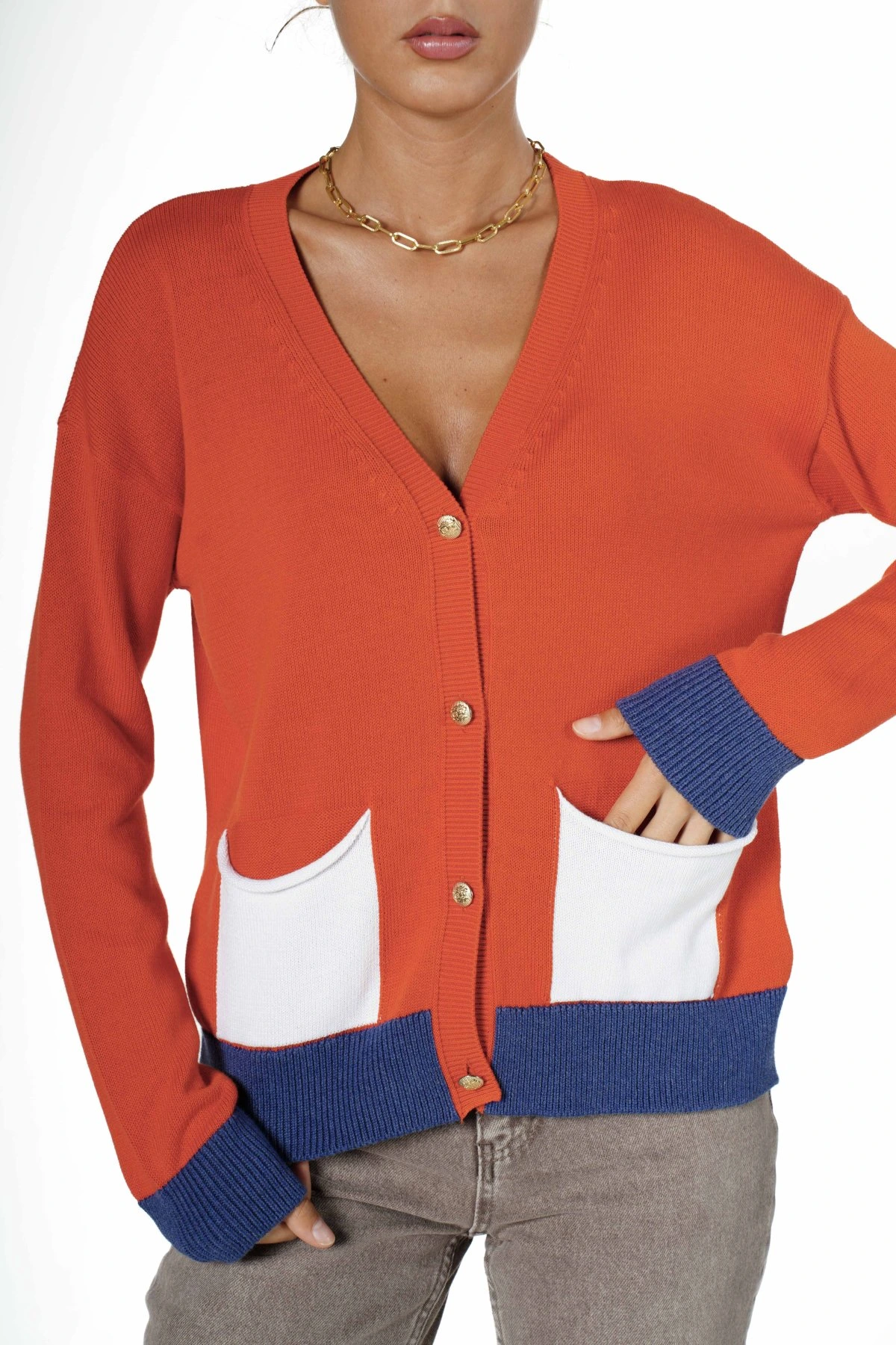 ÇİFT CEP RENKLİ GOLD DÜĞME HIRKA – KIRMIZI