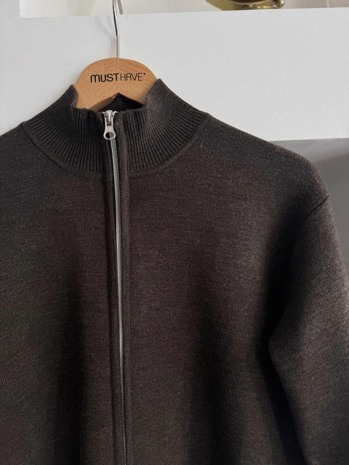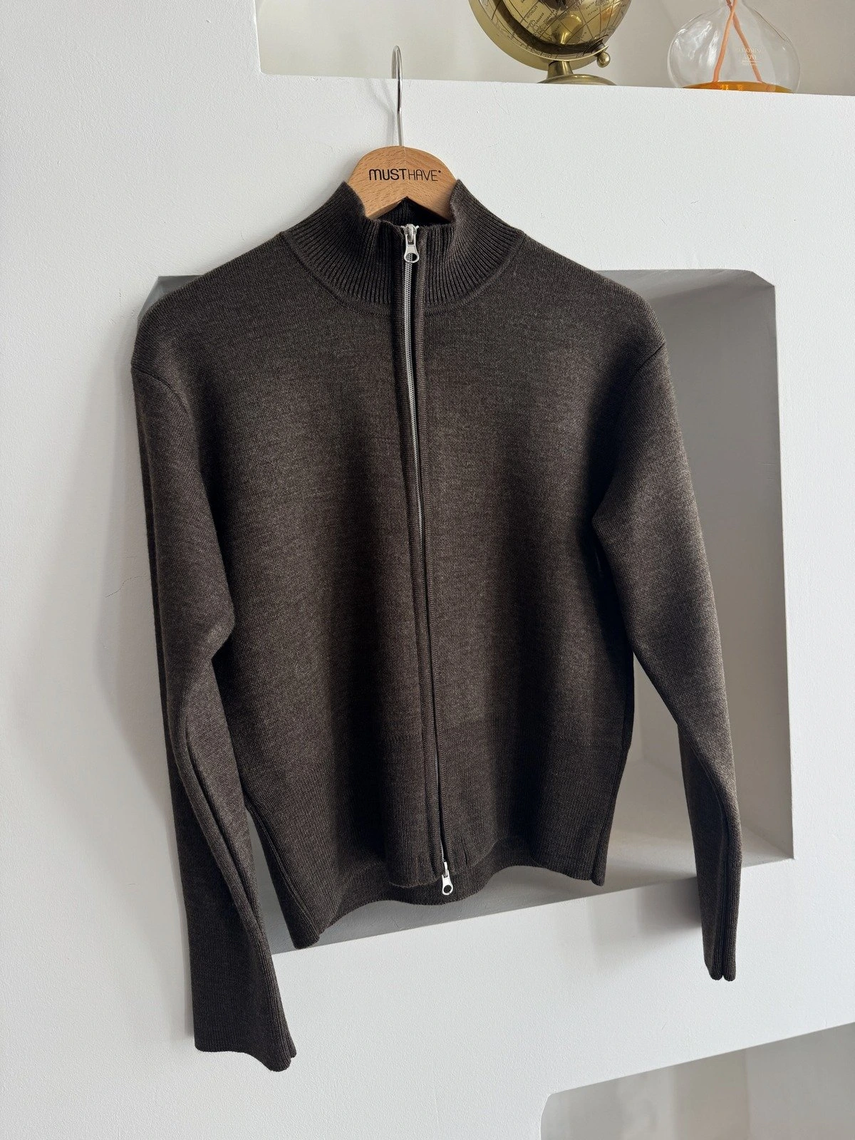 ÇİFT YÖN FERMUAR DİK YAKA HIRKA – KAHVE MELANJ