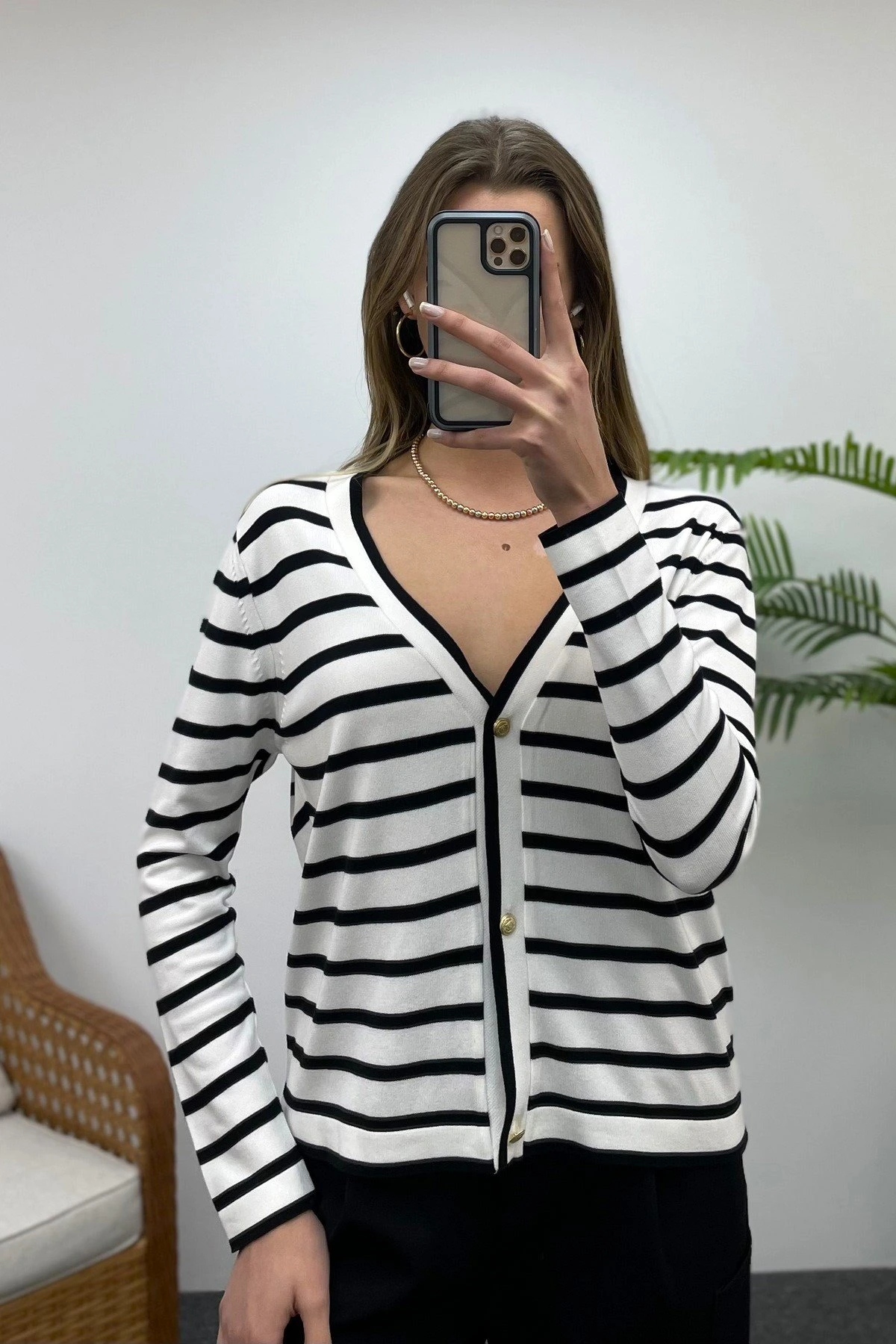 ÇİZGİLİ DÜĞMELİ HIRKA – EKRU
