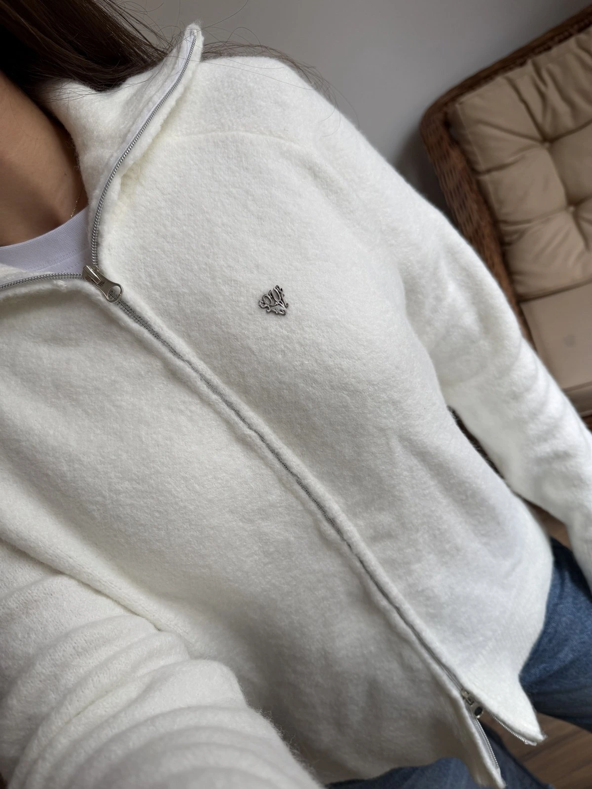 DİK YAKA FERMUARLI YÜN KARIŞIM SAKAL HIRKA – EKRU