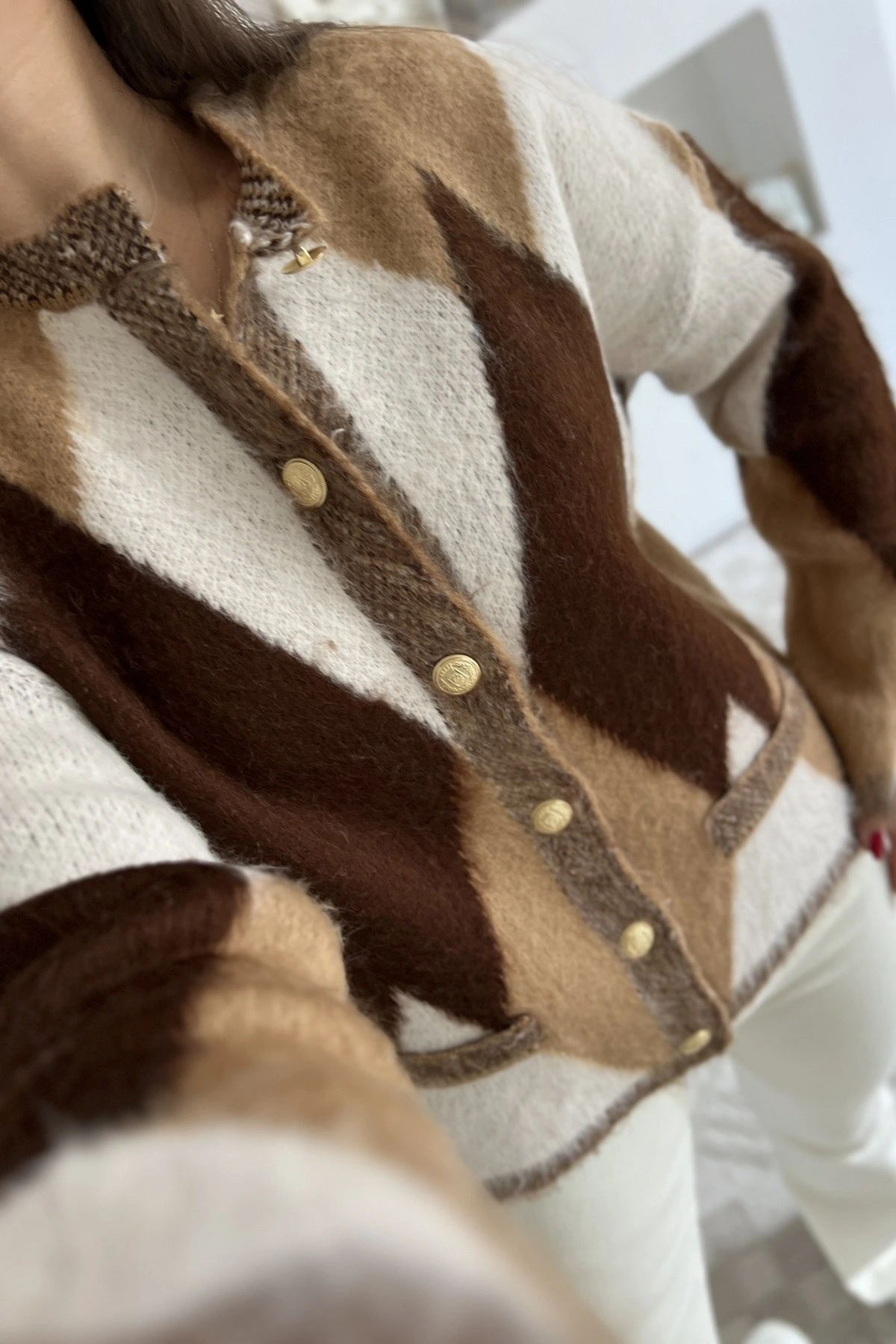 GENİŞ BAKLAVA DESEN BİSİKLET YAKA YUMOŞ HIRKA – CAMEL