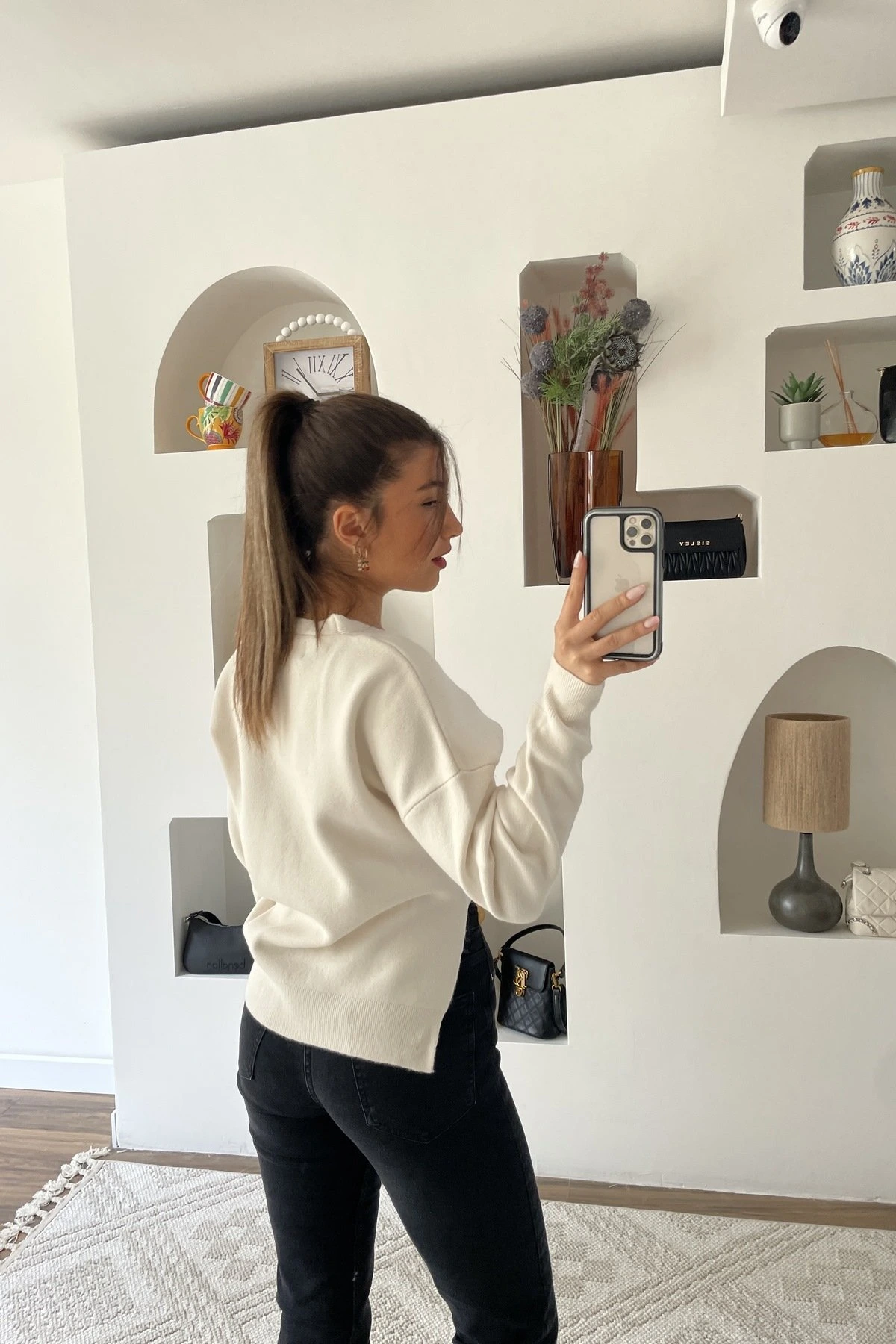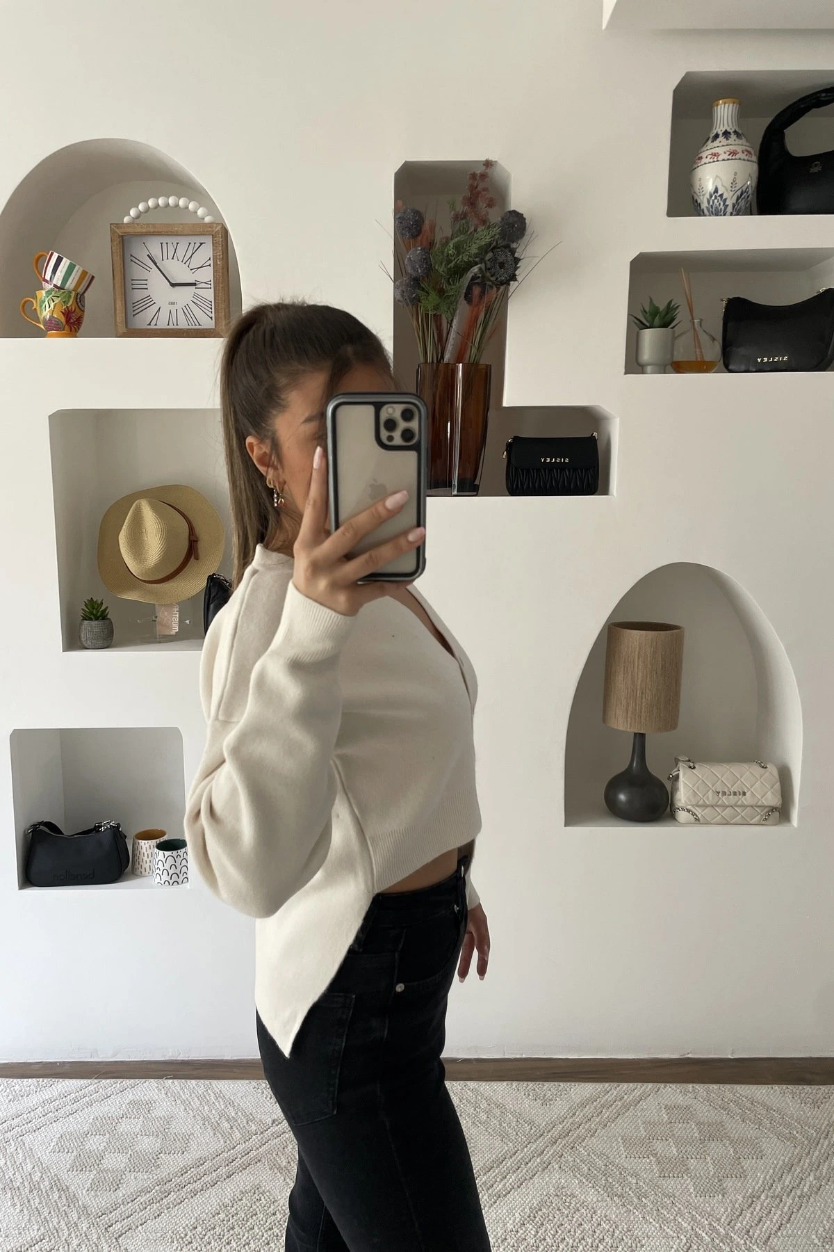 GOLD AKSESUAR ASİMETRİK V YAKA VİSKON HIRKA – KREM