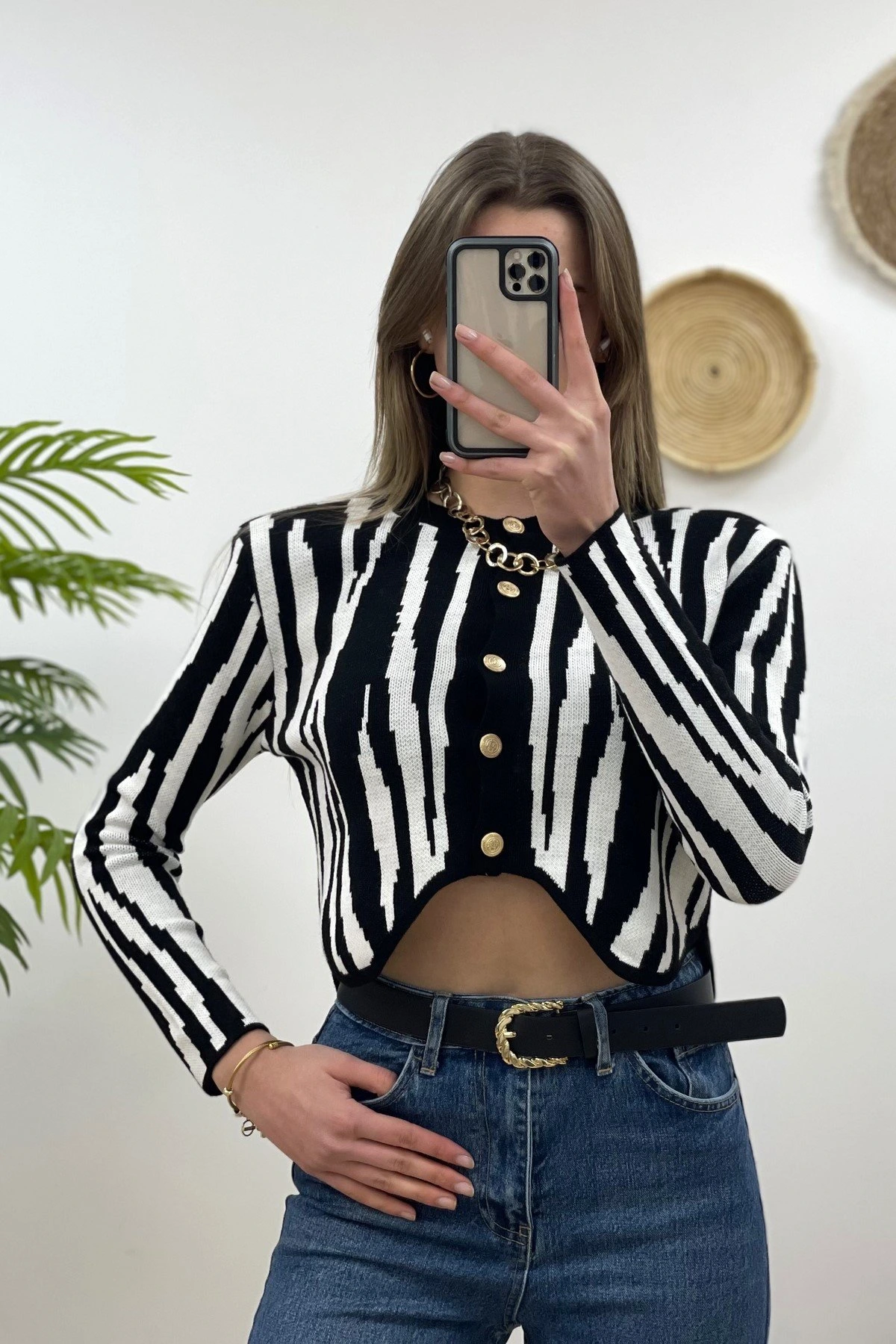 GOLD DÜĞME ASİMETRİK HIRKA – SİYAH BEYAZ