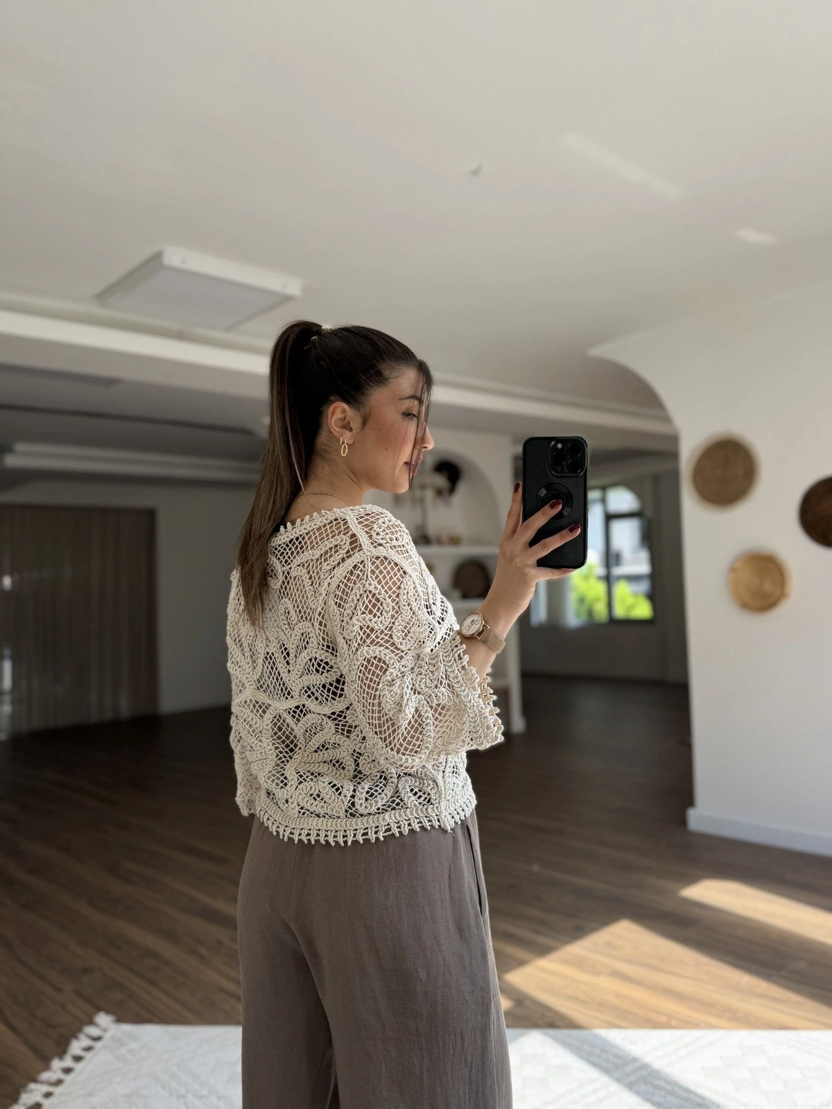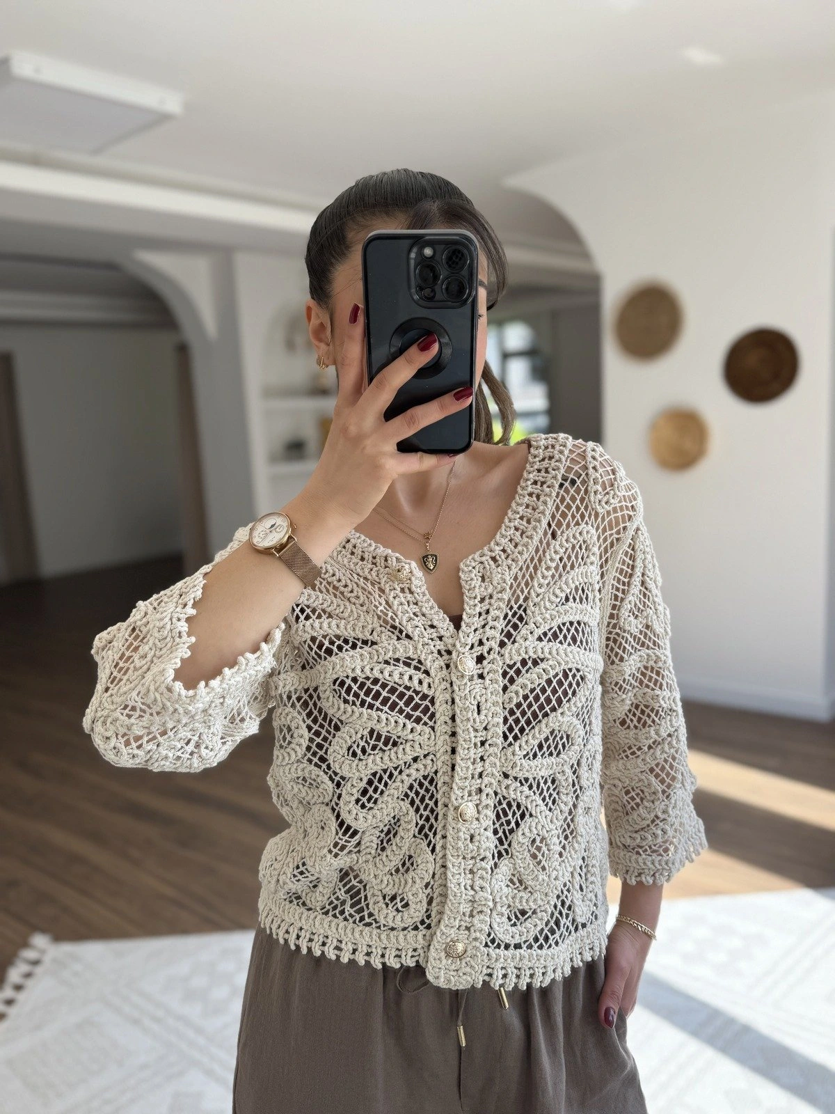 GOLD DÜĞME FİLE DOKUMA HIRKA – NATUREL