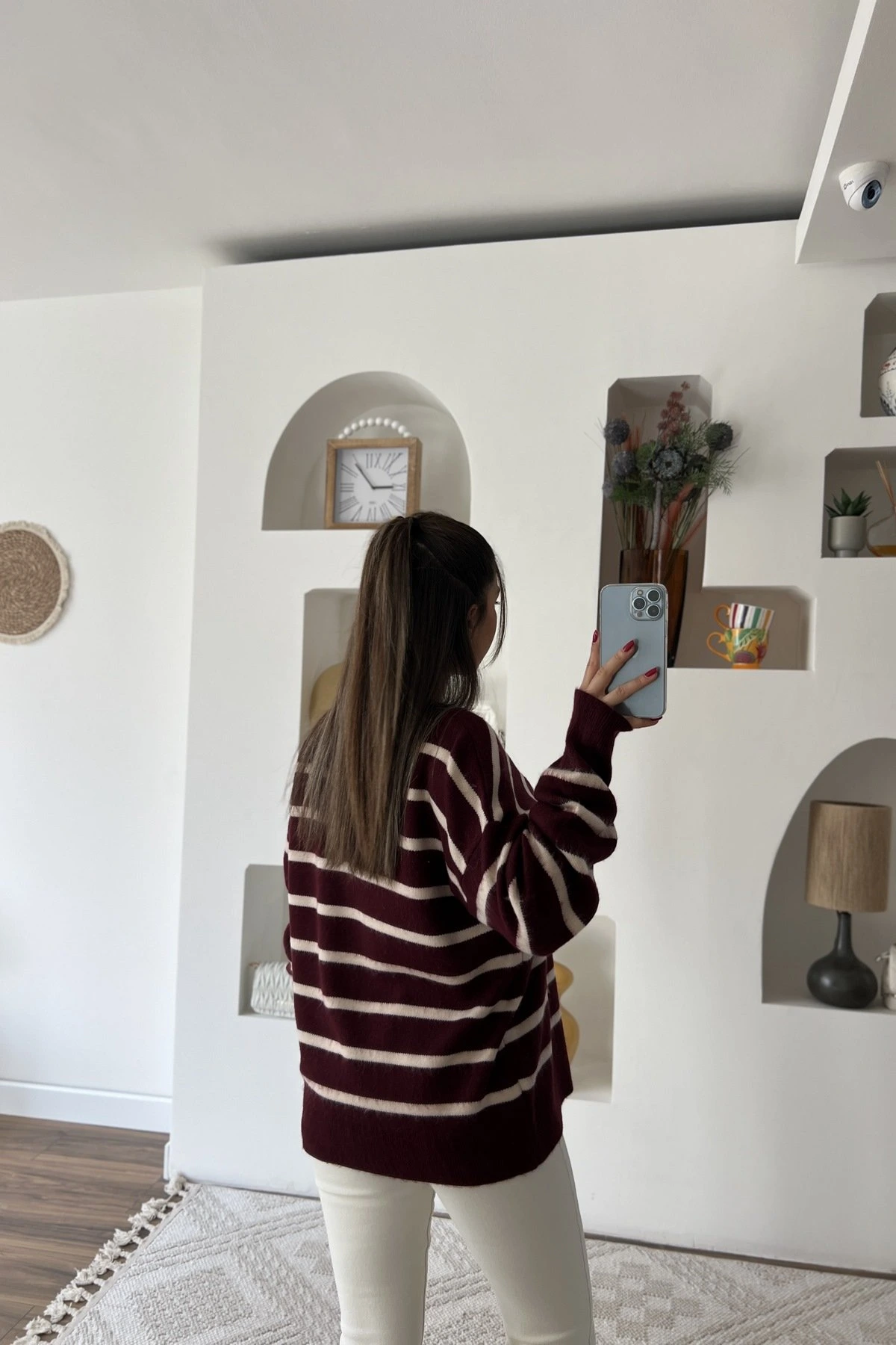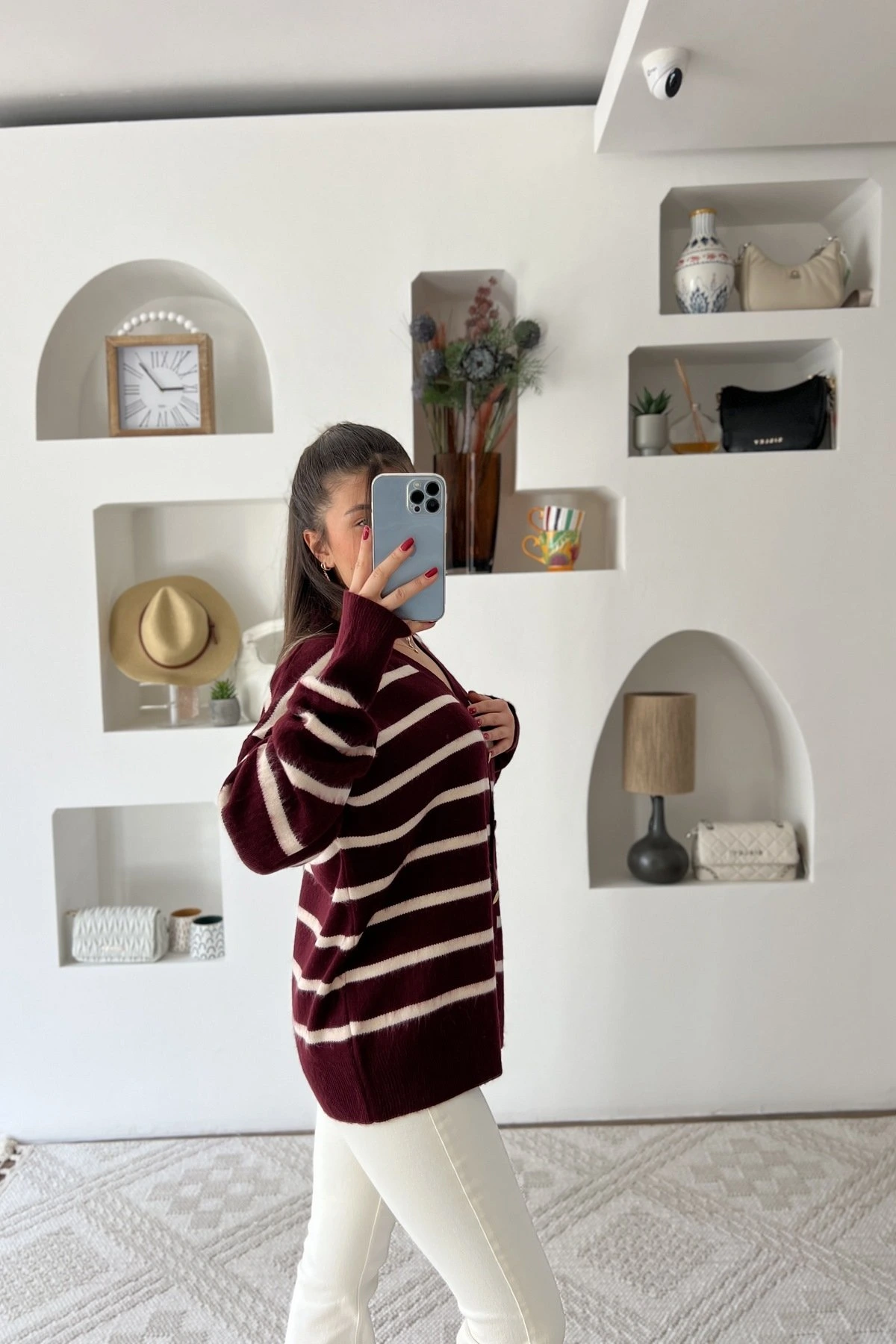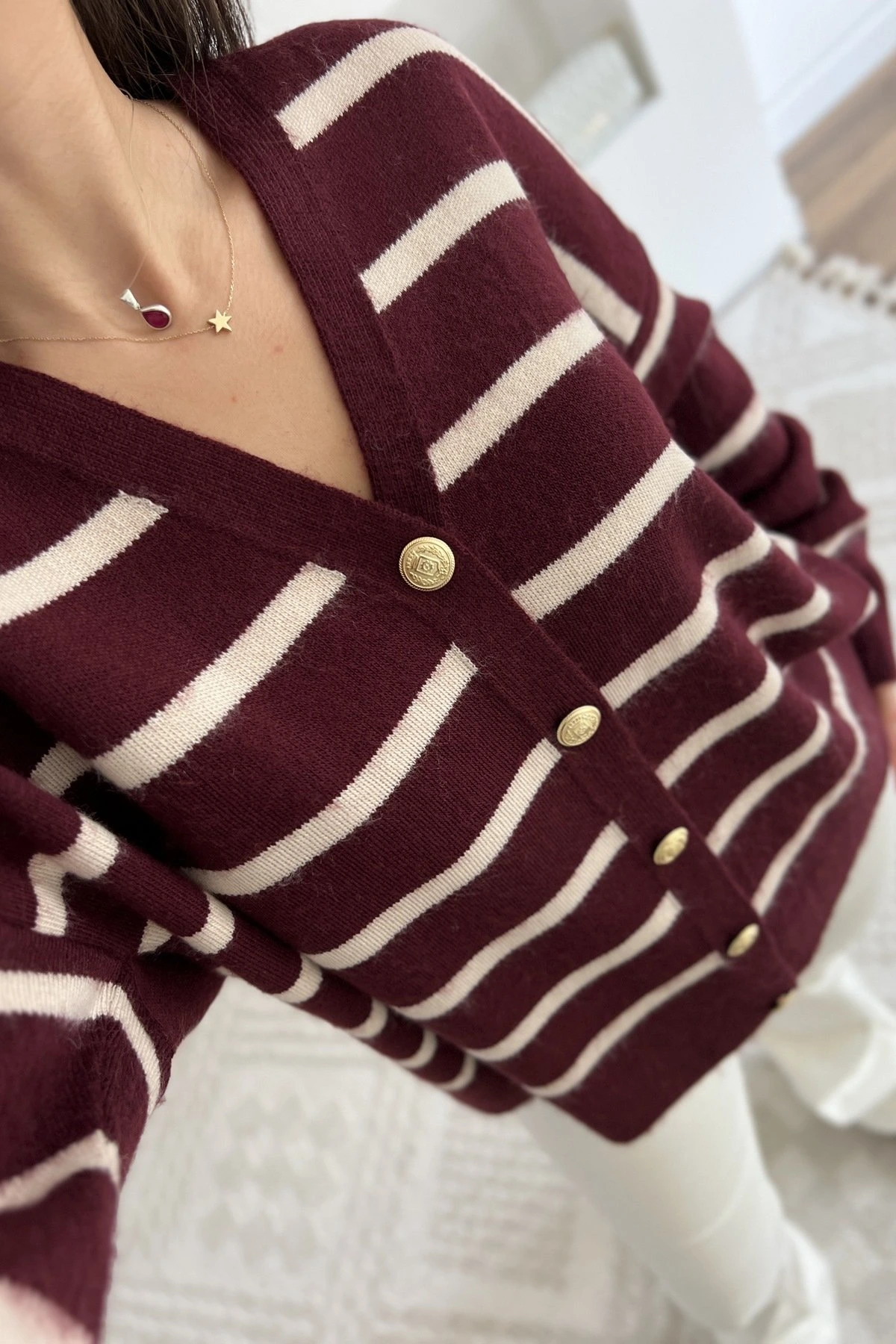 GOLD DÜĞME SALAŞ ÇİZGİLİ HIRKA – BORDO