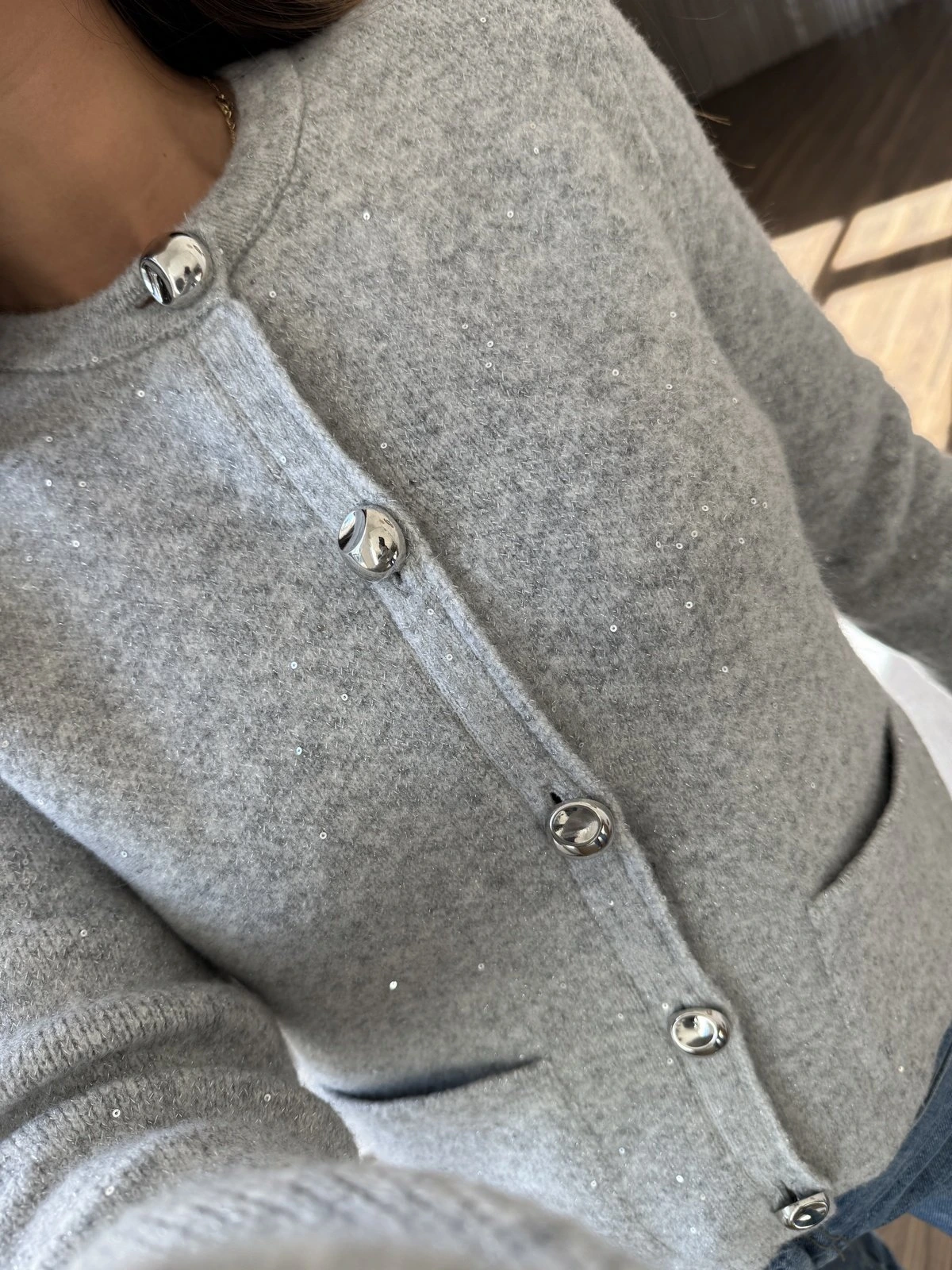 GOLD DÜĞME SİMLİ PUL DETAY HIRKA – GRİ