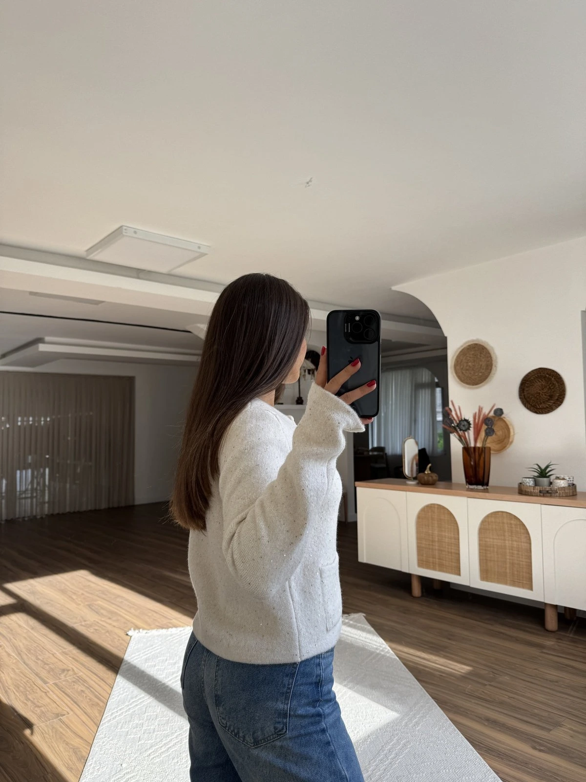 GOLD DÜĞME SİMLİ PUL DETAY HIRKA – KREM