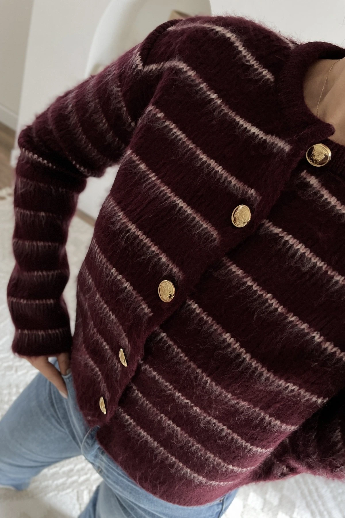 GOLD DÜĞME YUMOŞ ÇİZGİLİ HIRKA – BORDO