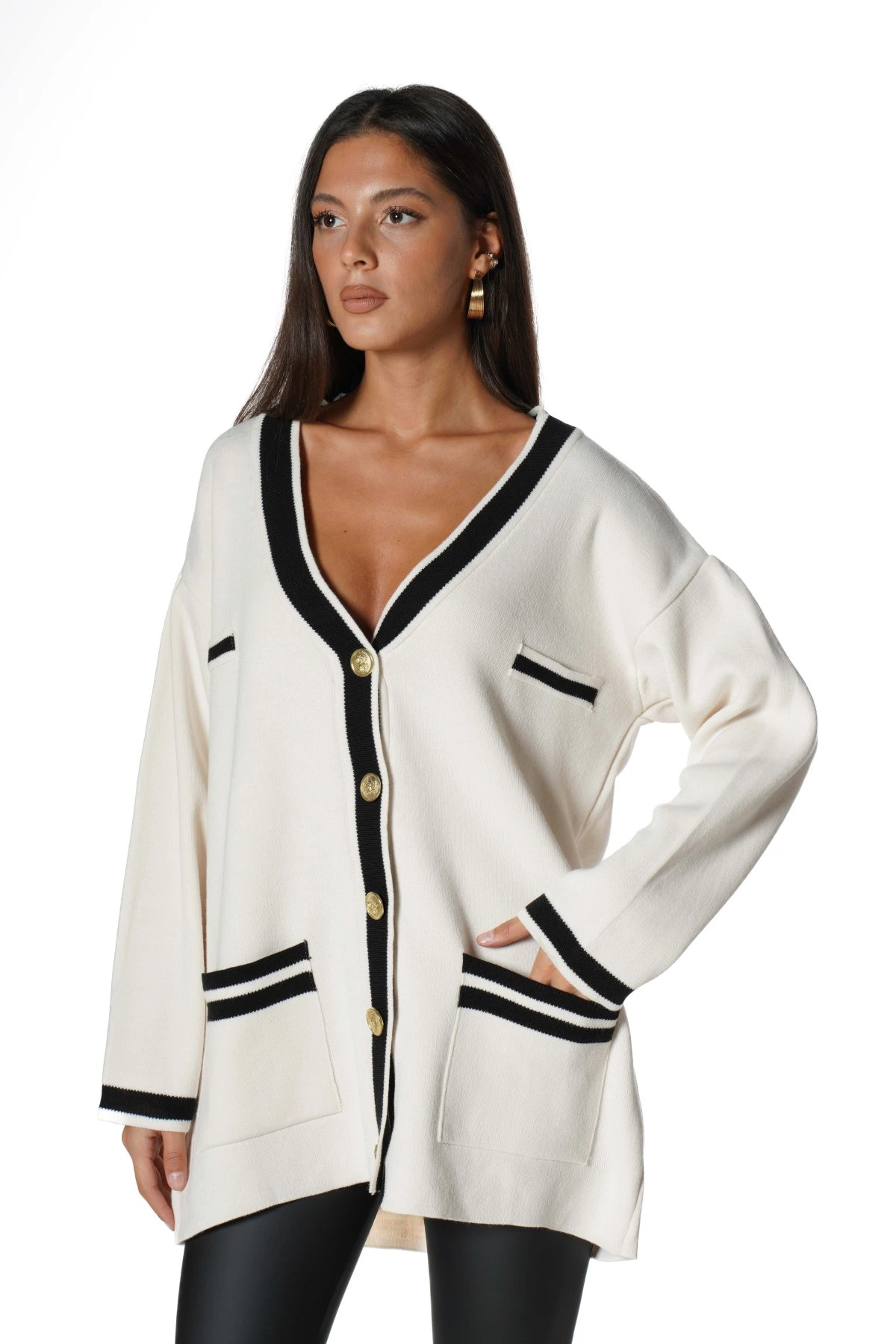 GOLD DÜĞMELİ KENAR VE CEP ŞERİTLİ SALAŞ HIRKA – KREM