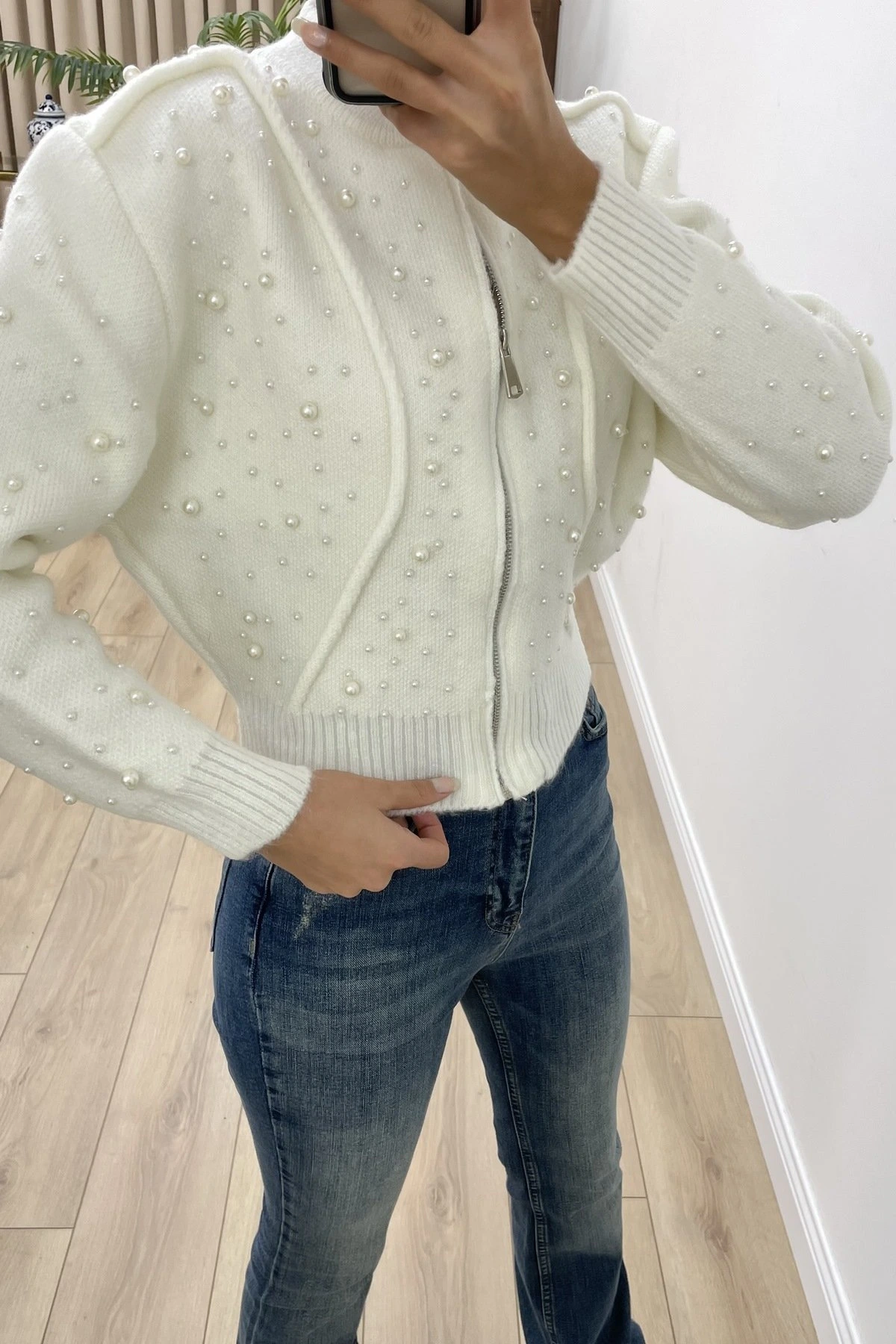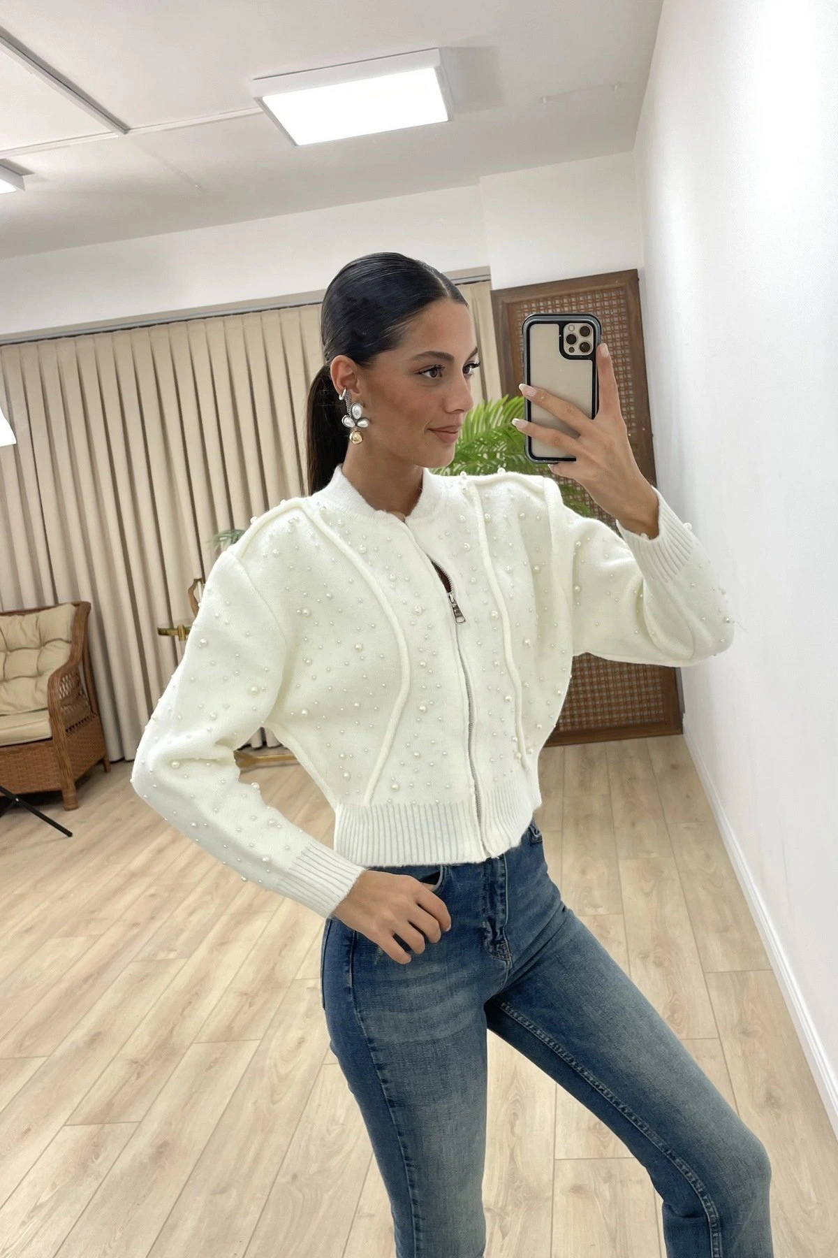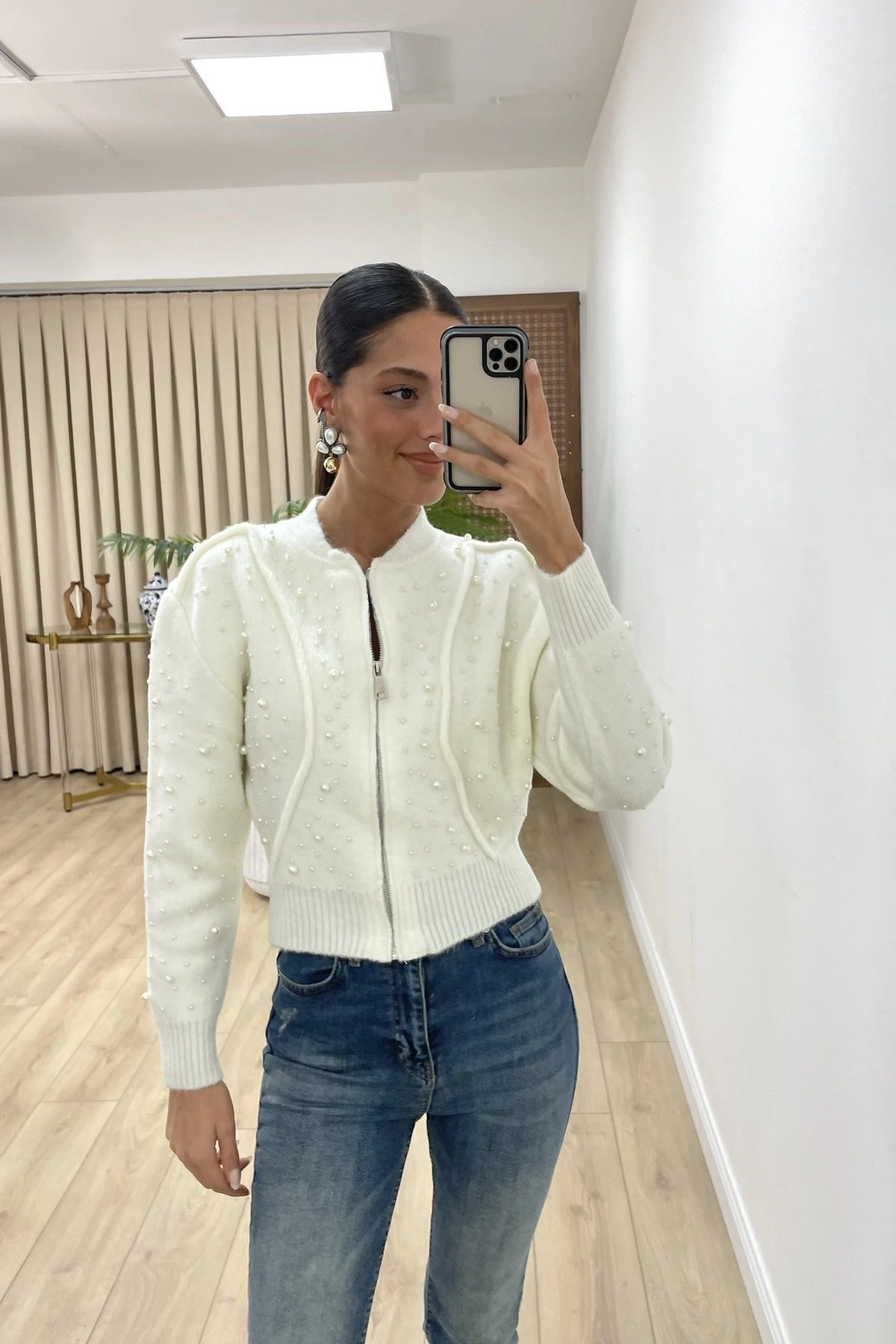 İNCİ ZIMBA FERMUARLI YÜN KRIŞIMLI HIRKA – EKRU