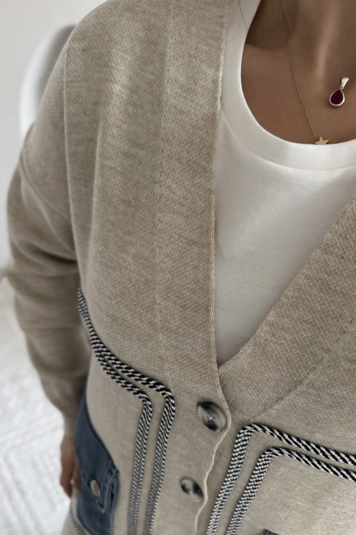 JEAN CEP DETAY BİYELİ SALAŞ PAMUK HIRKA – TAŞ
