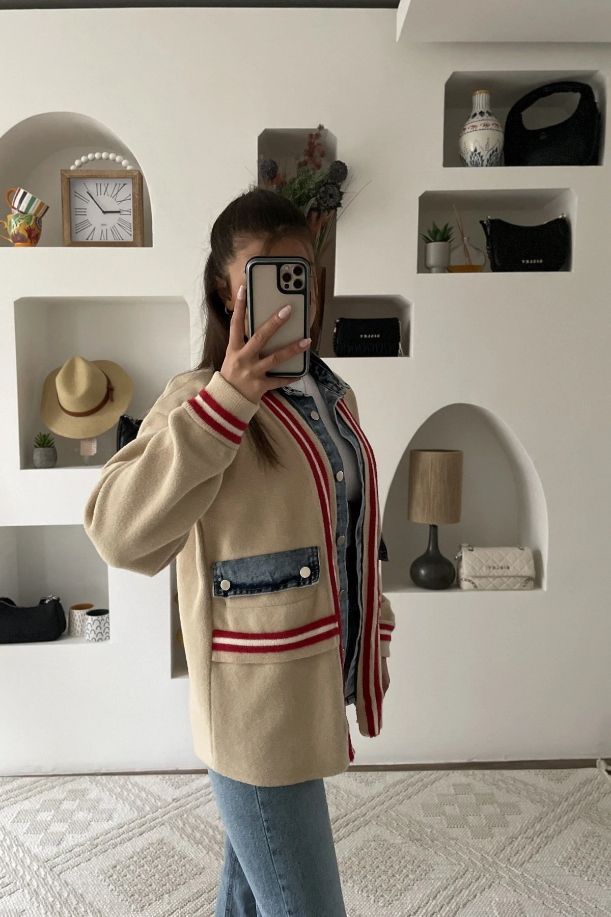 JEAN DETAY ŞERİTLİ YUMUŞAK DOKU HIRKA – CAMEL