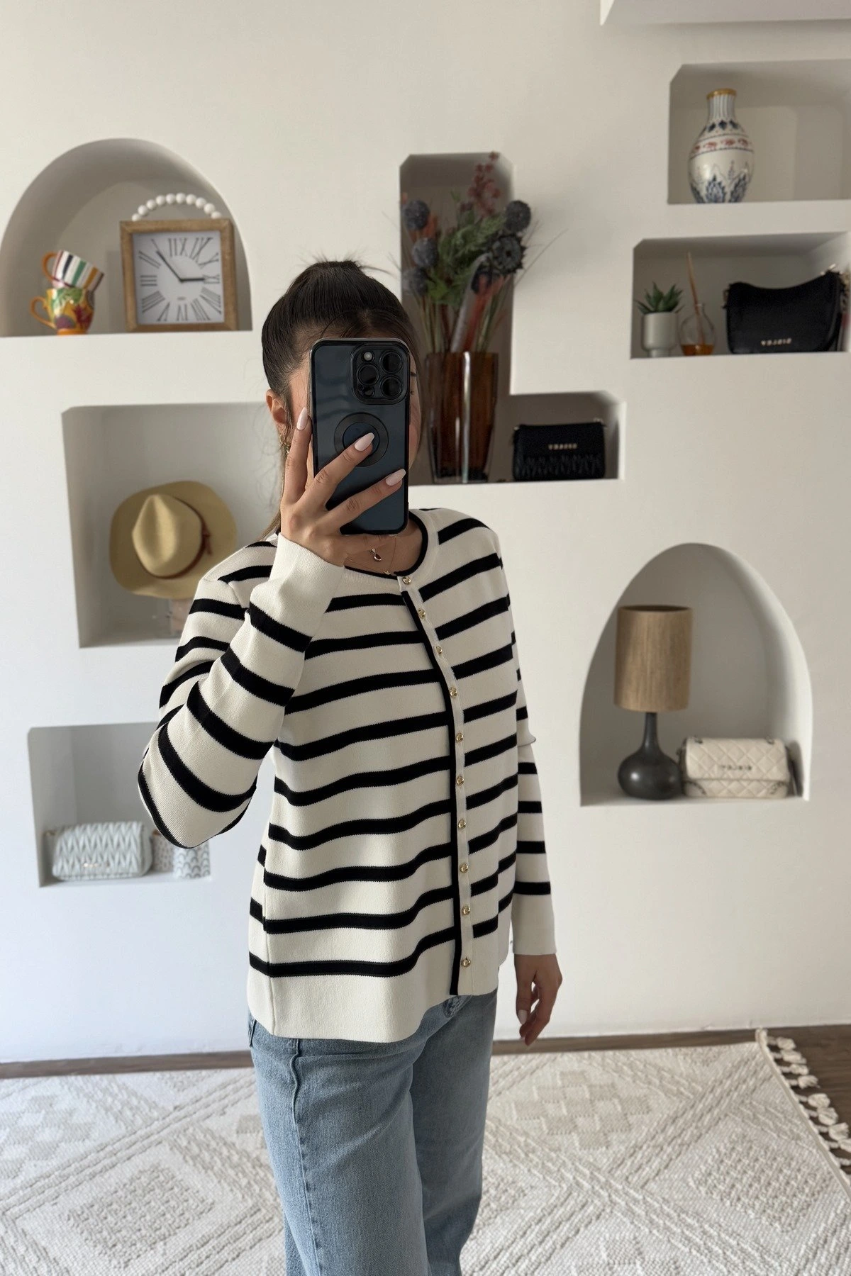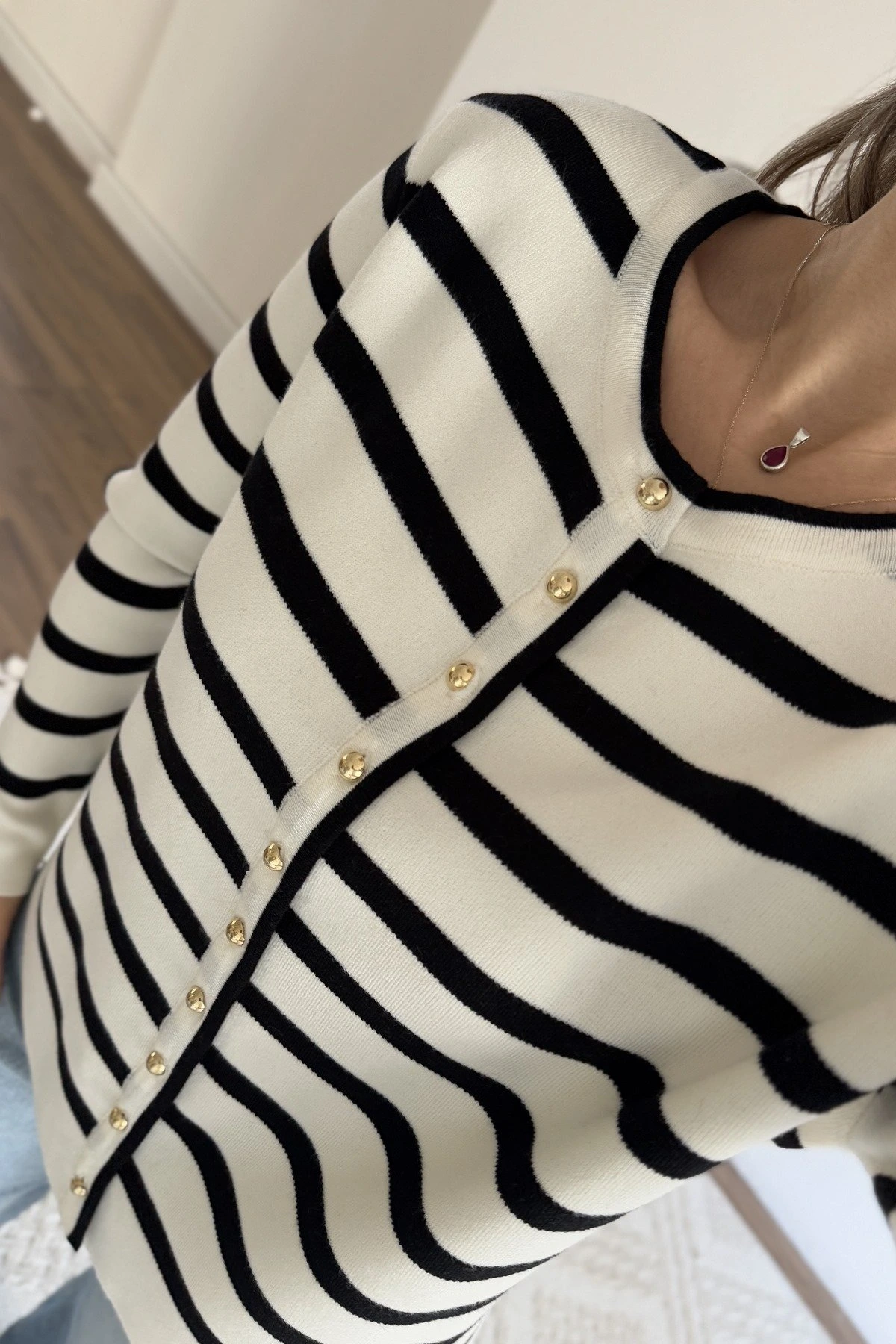 KALIN ÇİZGİ GOLD DÜĞME VİSKON HIRKA - SİYAH KEMİK