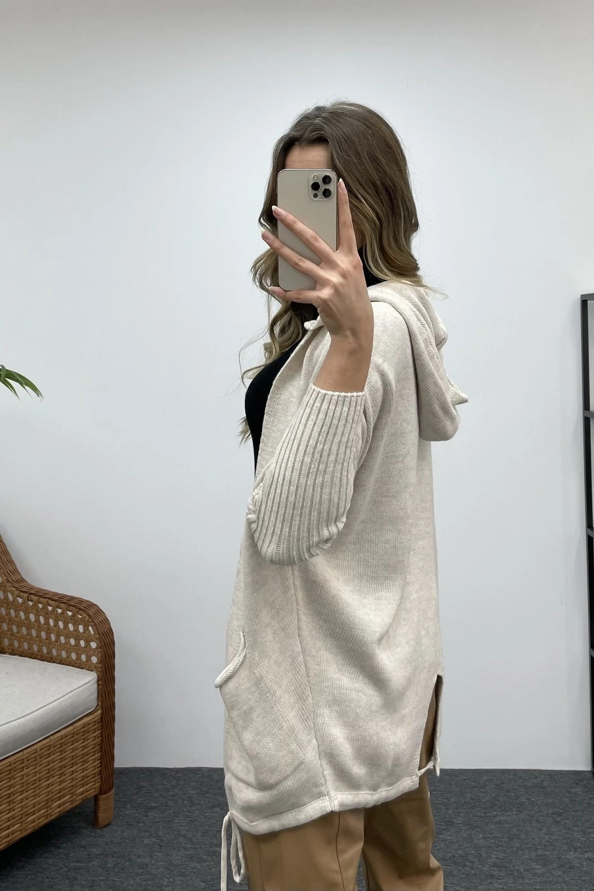 KAPİŞONLU REGLAN KOL CEPLİ HIRKA – KREM