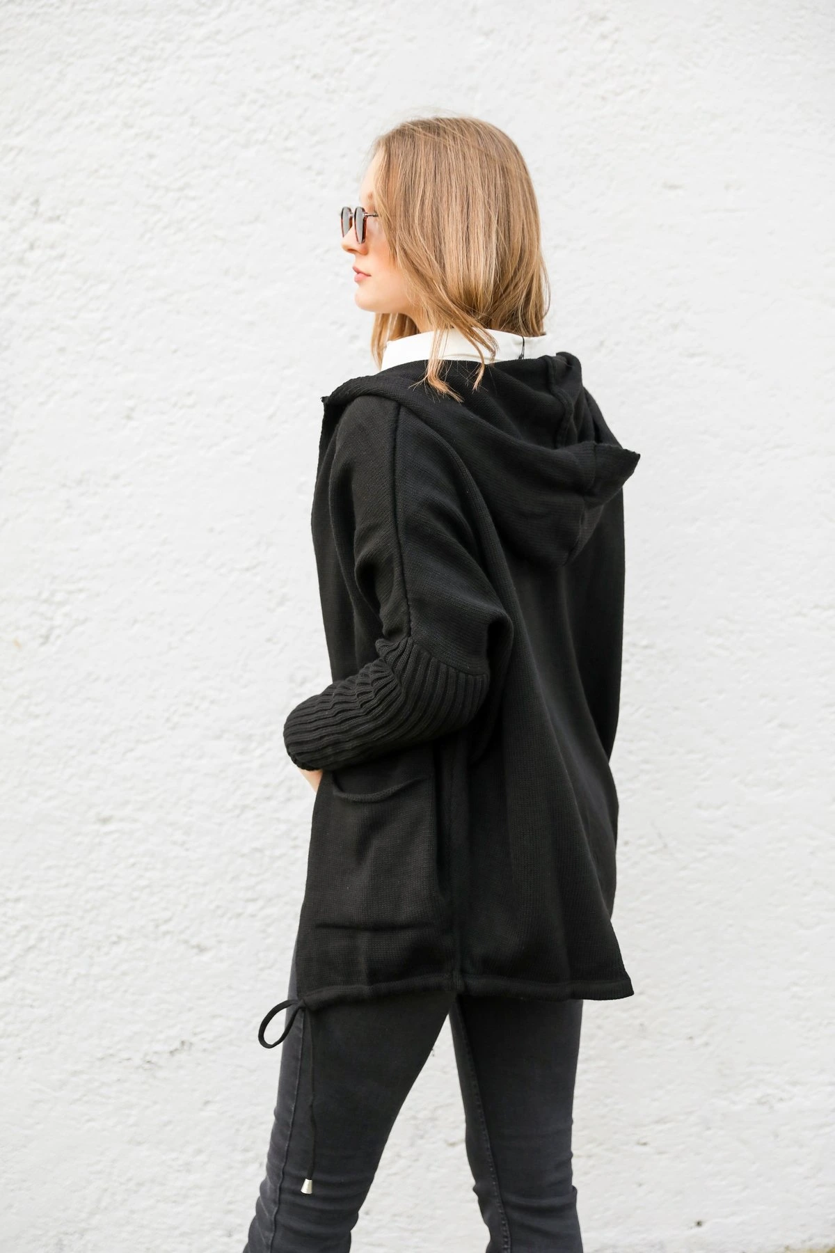 KAPİŞONLU REGLAN KOL CEPLİ HIRKA – SİYAH