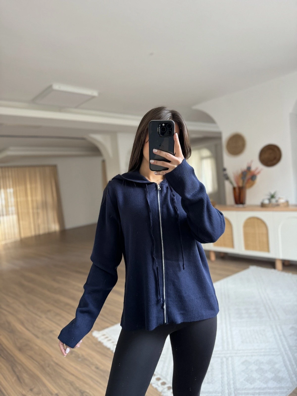 KAPÜŞONLU FERMUARLI HIRKA – LACİVERT