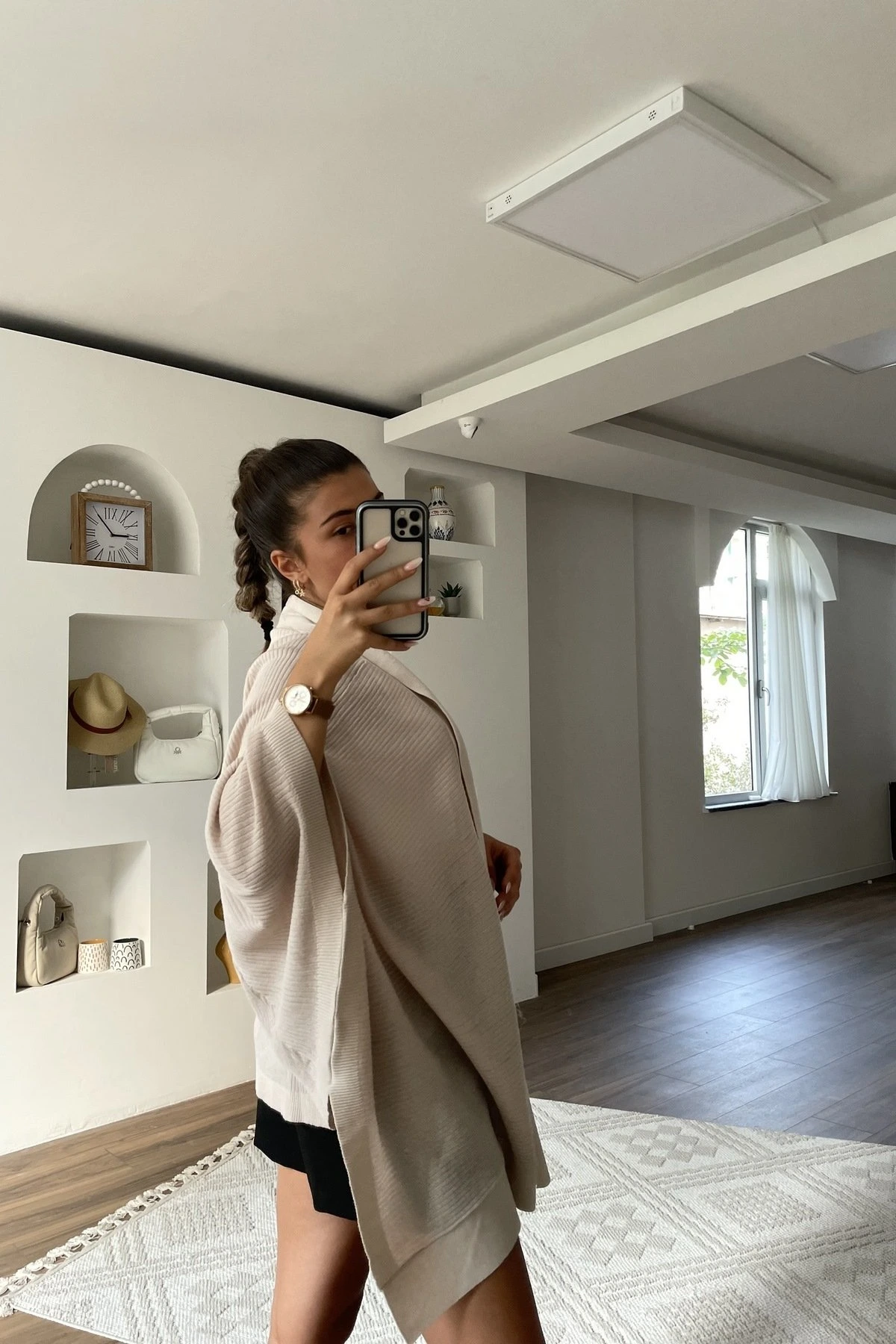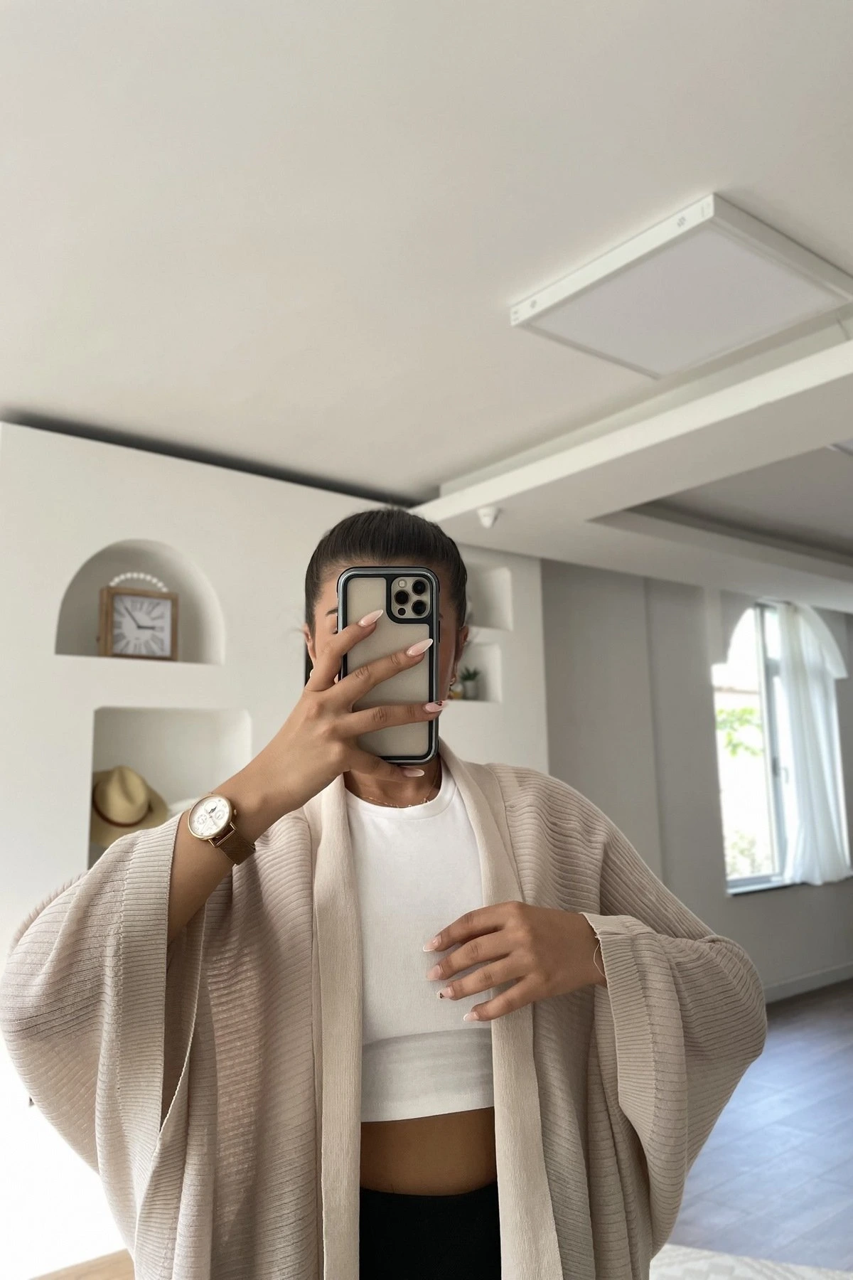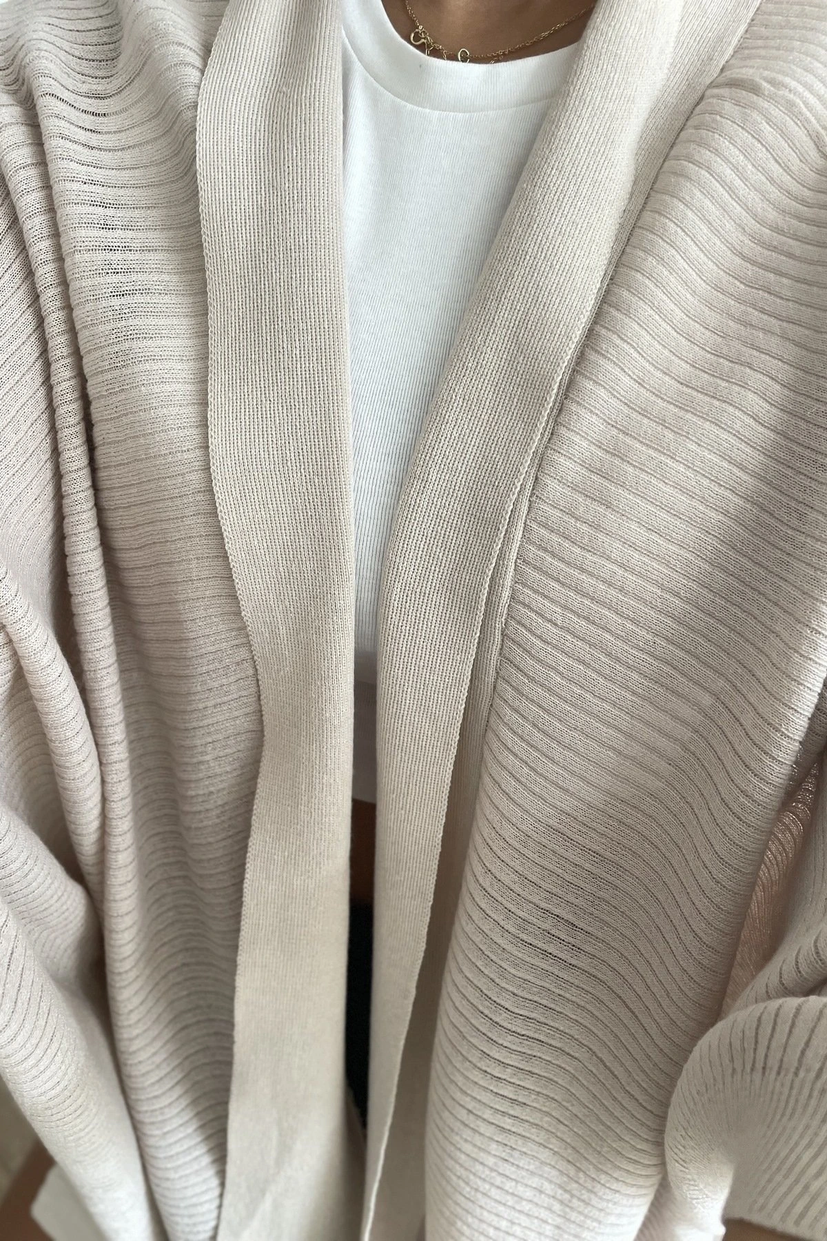 KİMONO KOL ASİMETRİK İNCE HIRKA – BEJ
