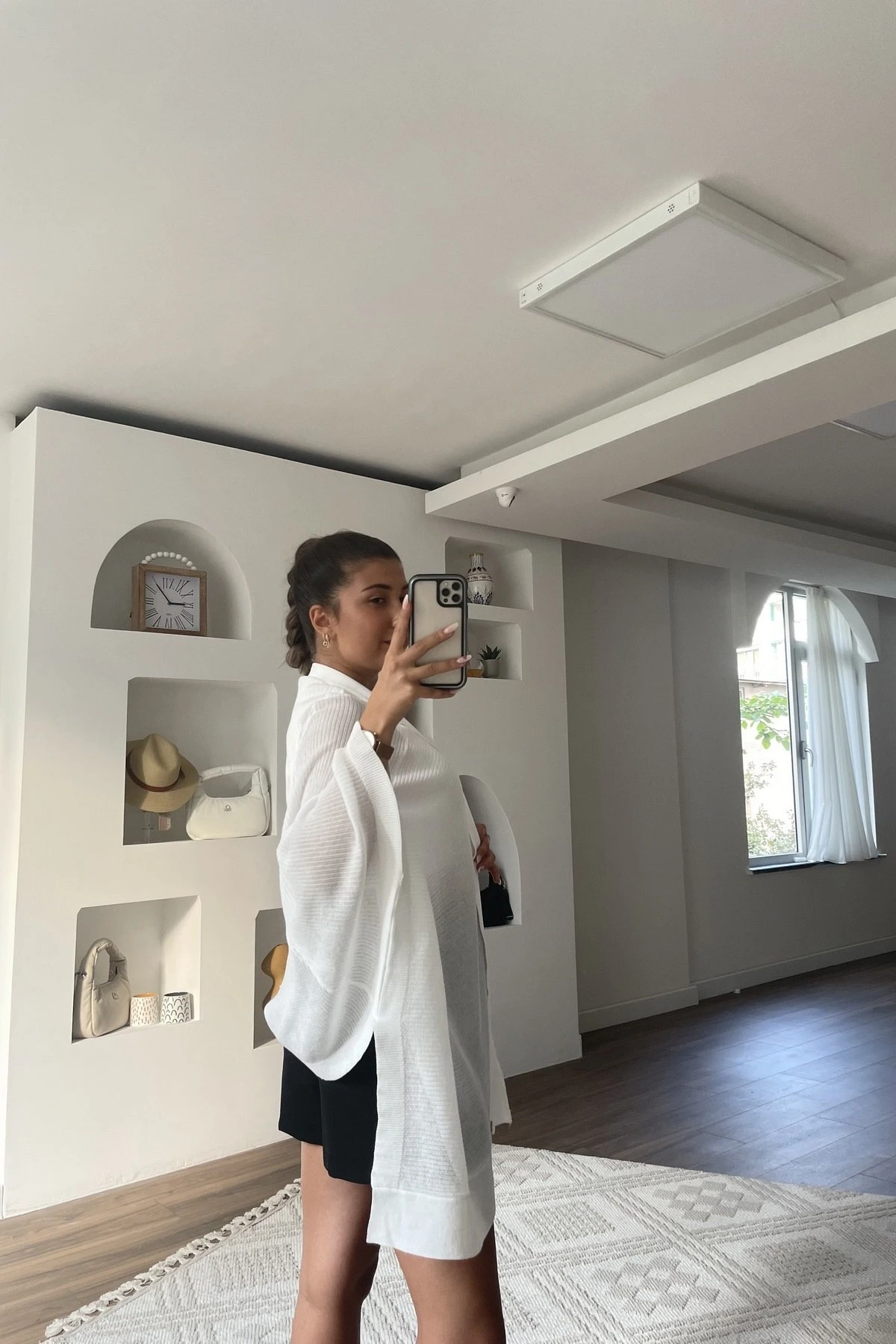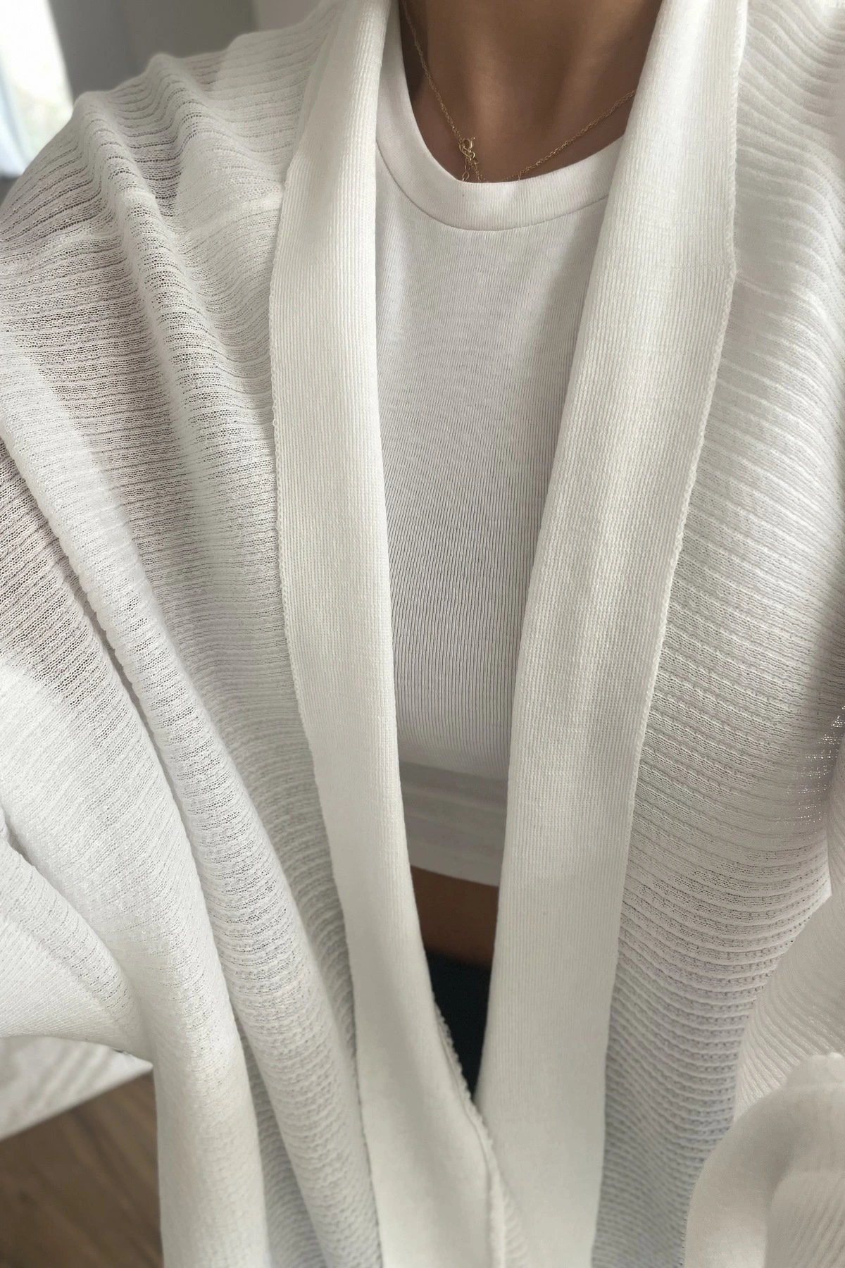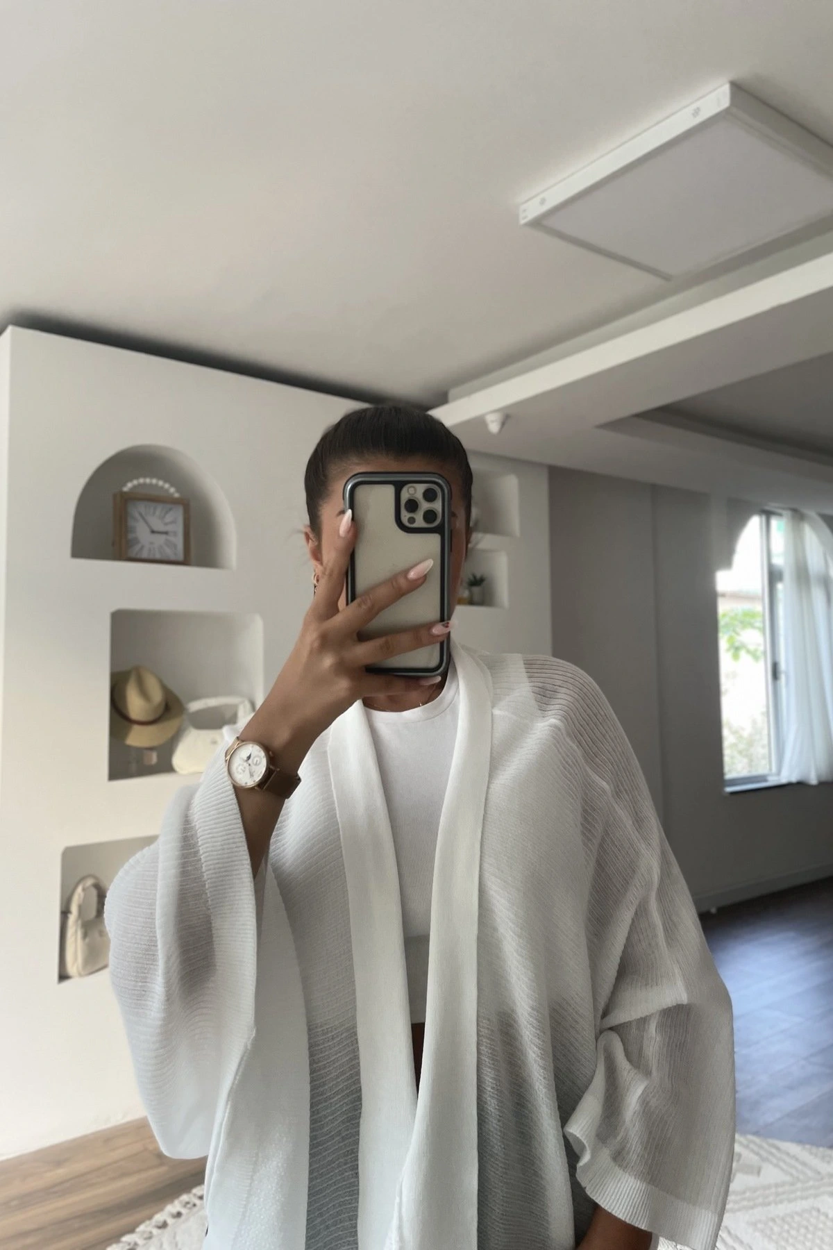 KİMONO KOL ASİMETRİK İNCE HIRKA – BEYAZ