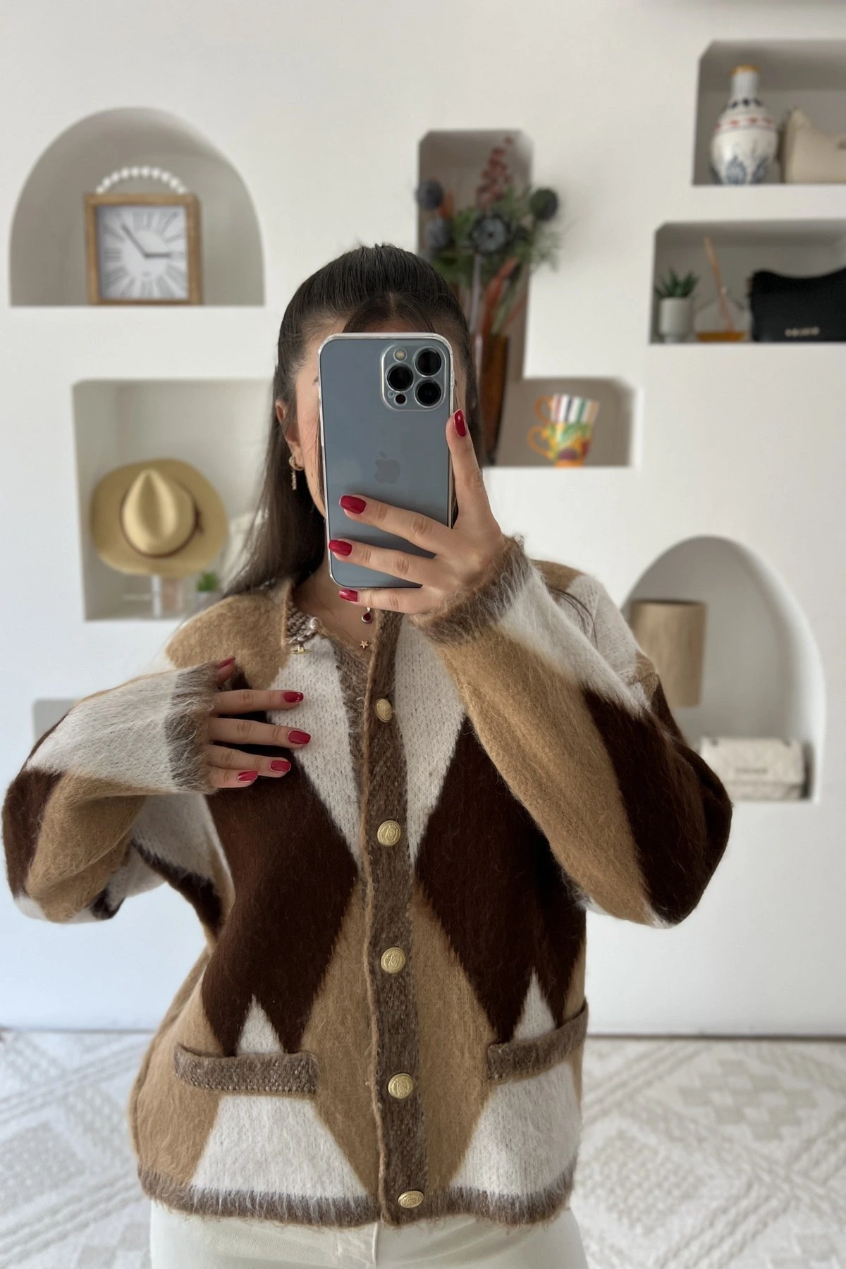 GENİŞ BAKLAVA DESEN BİSİKLET YAKA YUMOŞ HIRKA – CAMEL