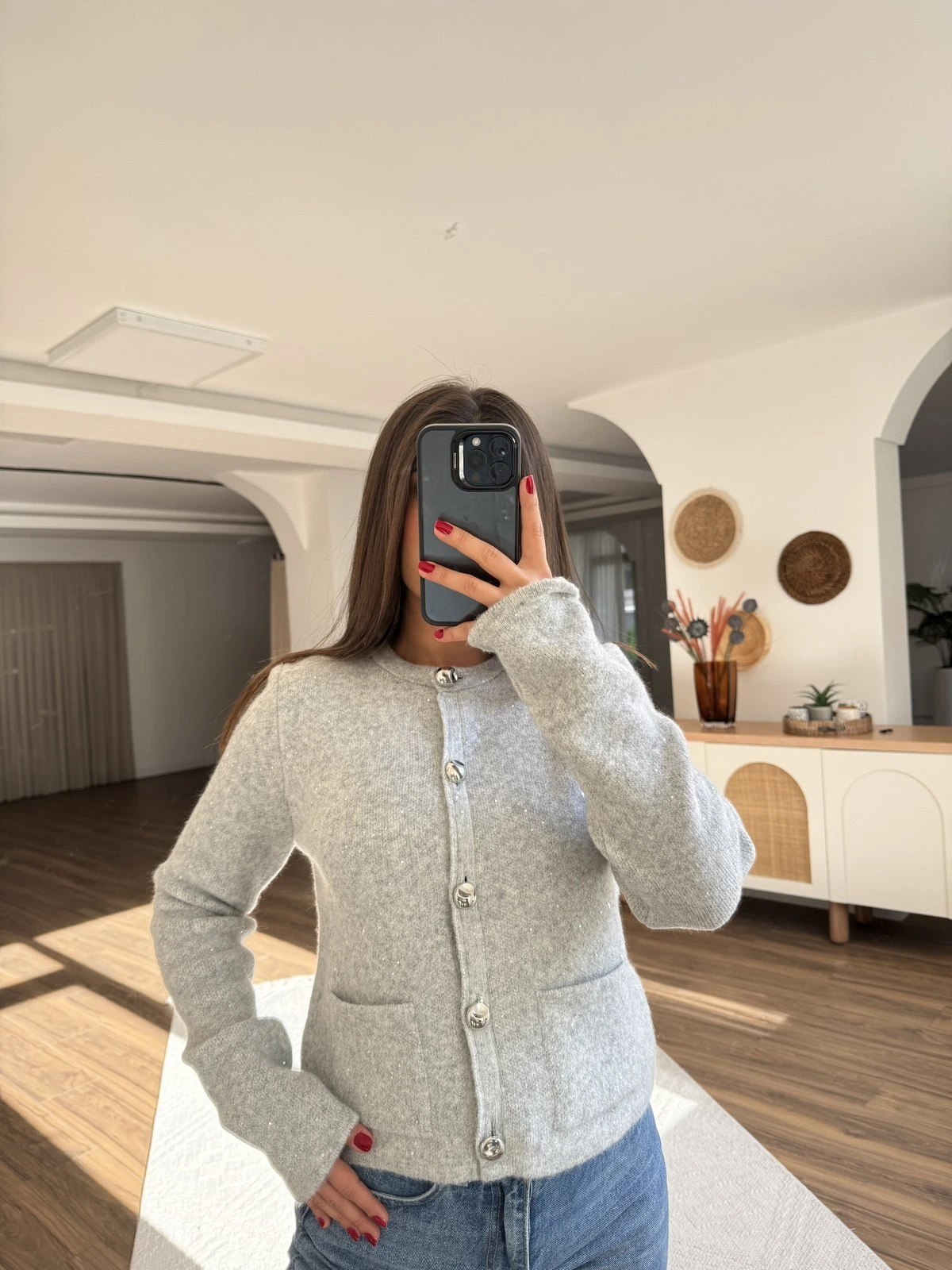 ÇİÇEK DESEN DOKUMA GOLD DÜĞME VİSKON HIRKA – EKRU