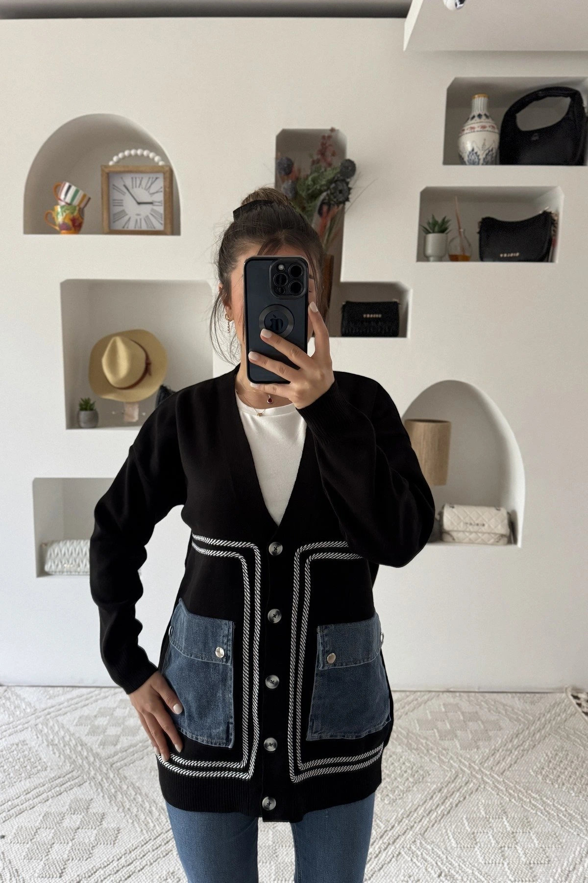 JEAN CEP DETAY BİYELİ SALAŞ PAMUK HIRKA – SİYAH