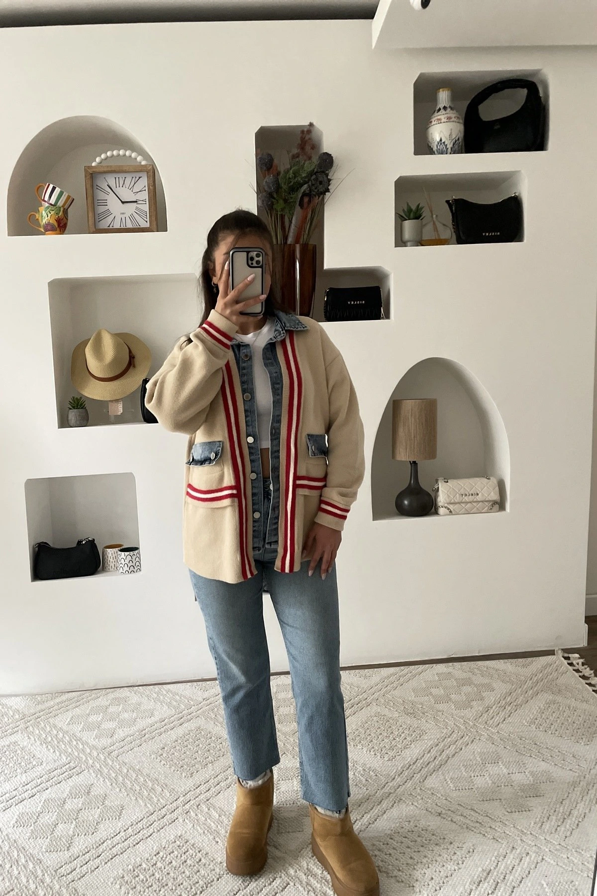 JEAN DETAY ŞERİTLİ YUMUŞAK DOKU HIRKA – CAMEL