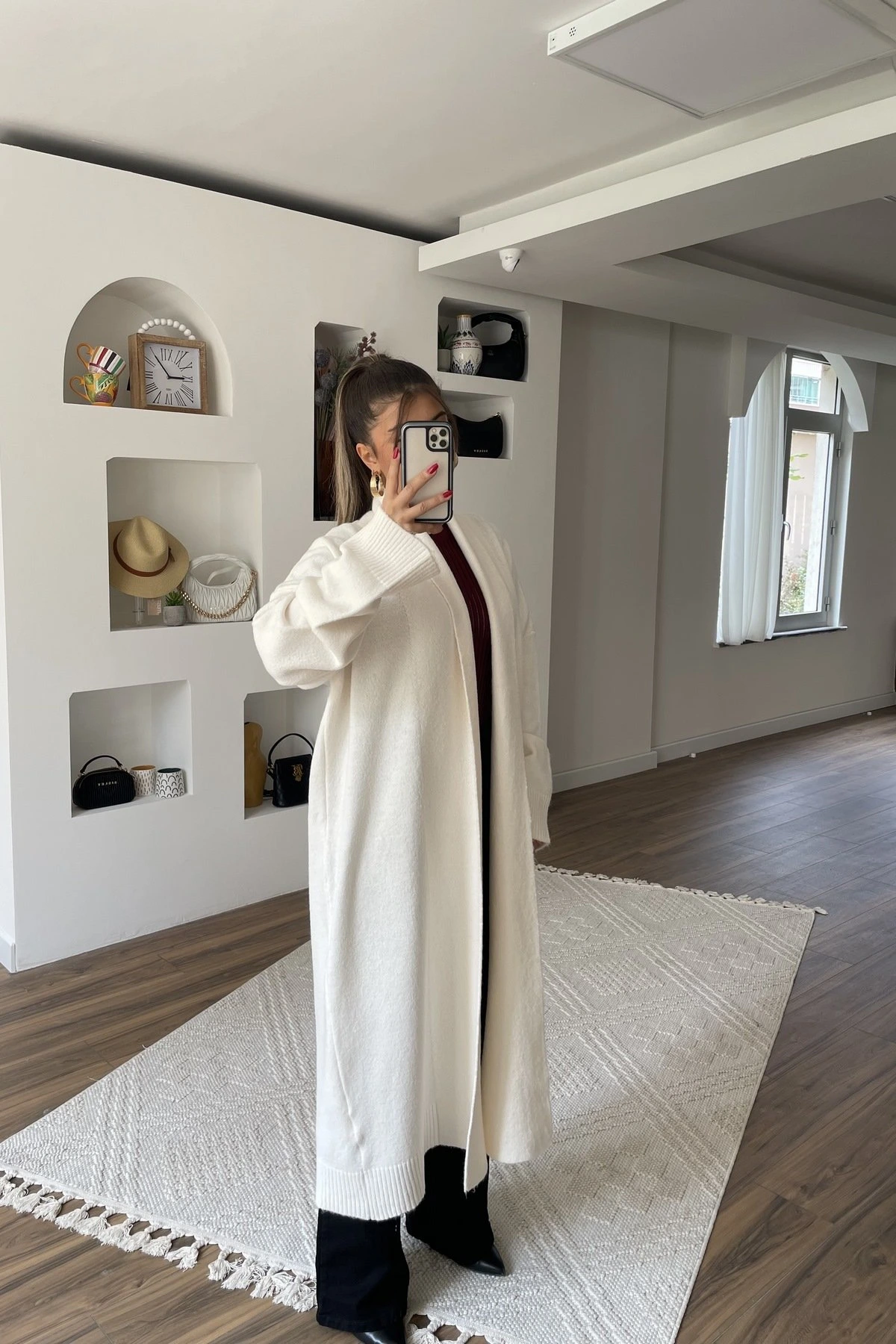 ŞAL YAKA UZUN SALAŞ HIRKA – KREM
