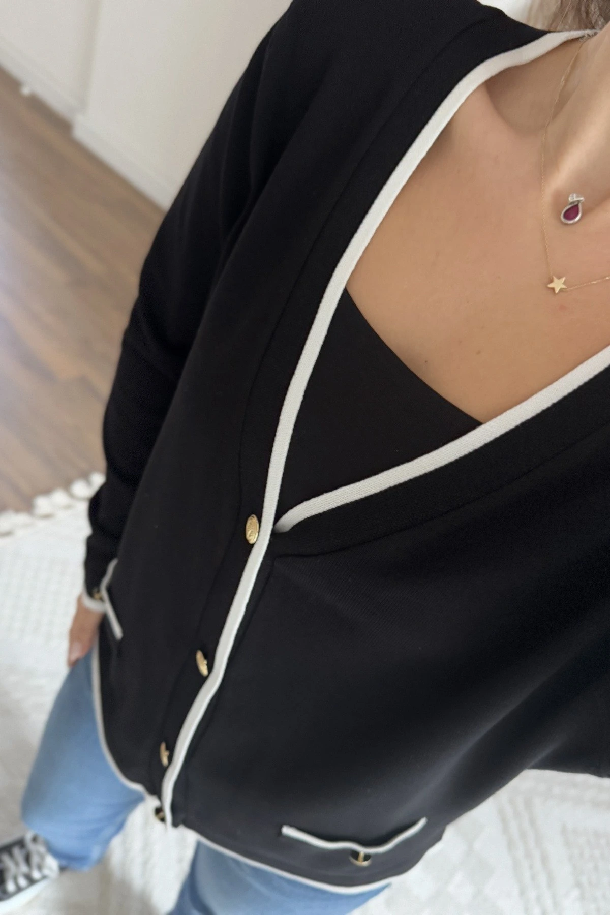 “ŞERİT DETAY GOLD DÜĞME CEP GÖRÜNÜM VİSKON HIRKA – SİYAH EKRU” için yorum yapan ilk kişi siz olun Yanıtı iptal et
