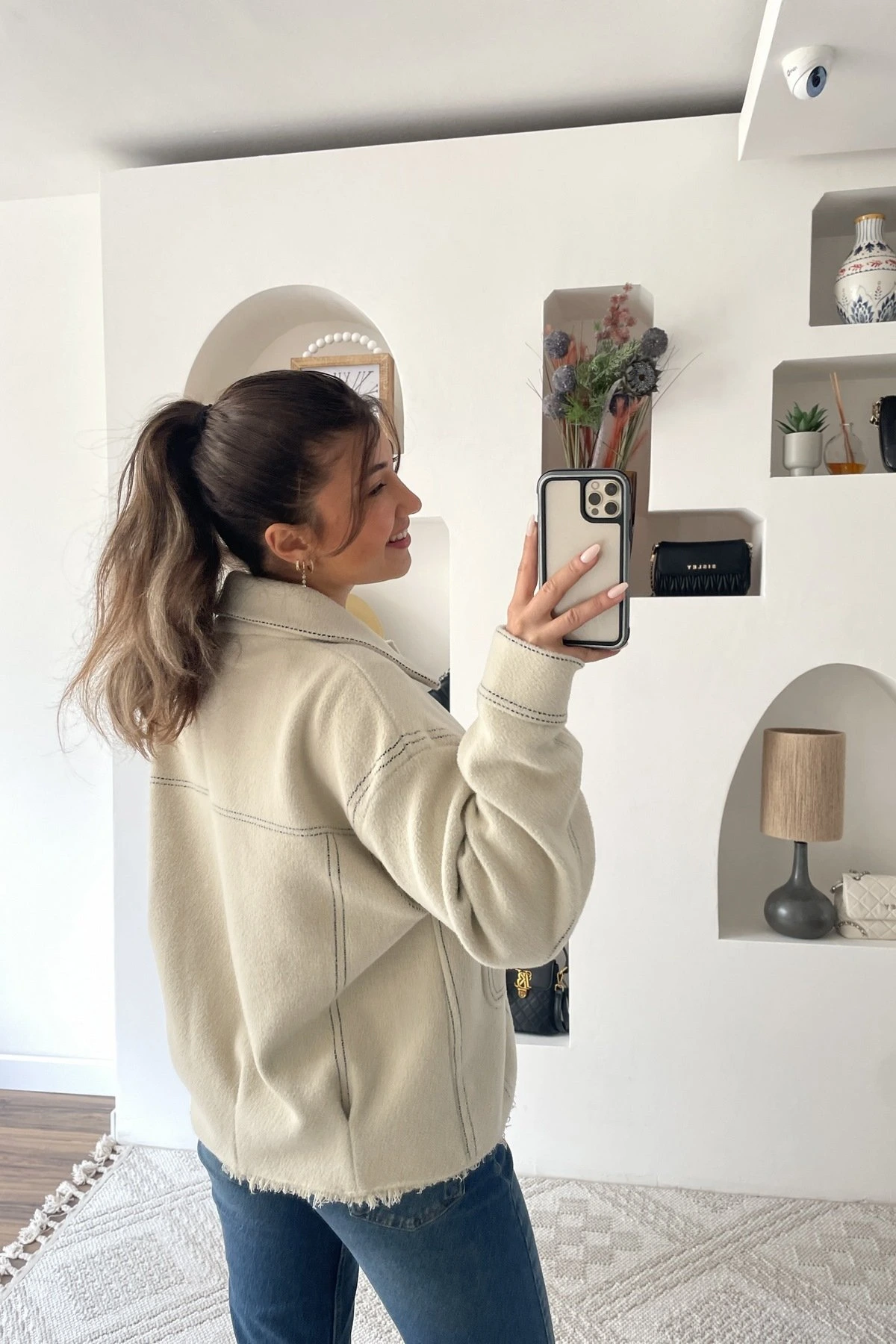 SPOR DİKİŞ ETEĞİ PÜSKÜL CEPLİ YAKALI CEKET MMODEL HIRKA – TAŞ