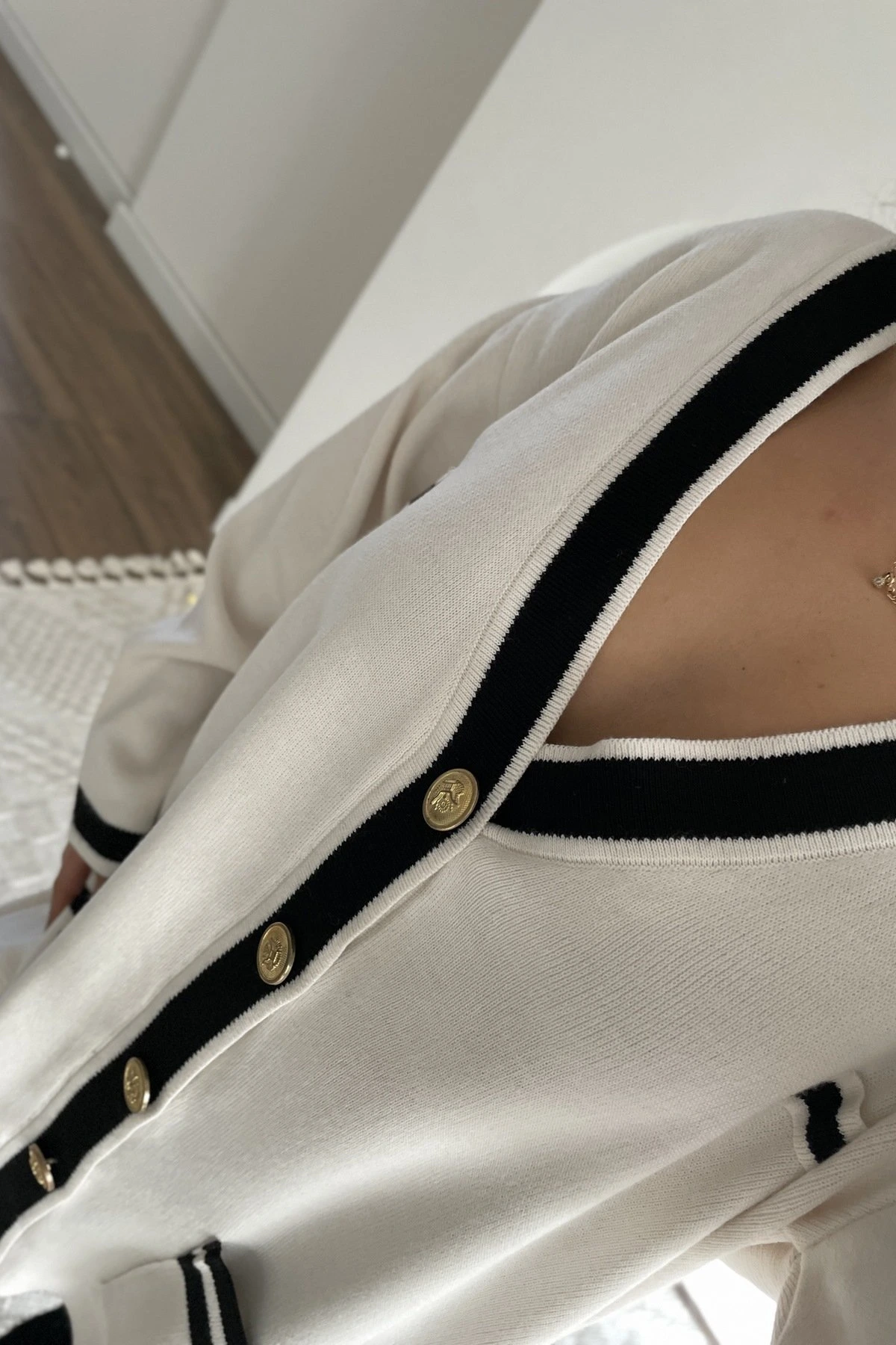 KOL KAT DÜĞME ÇİZGİLİ SALAŞ KAZAK - SİYAH