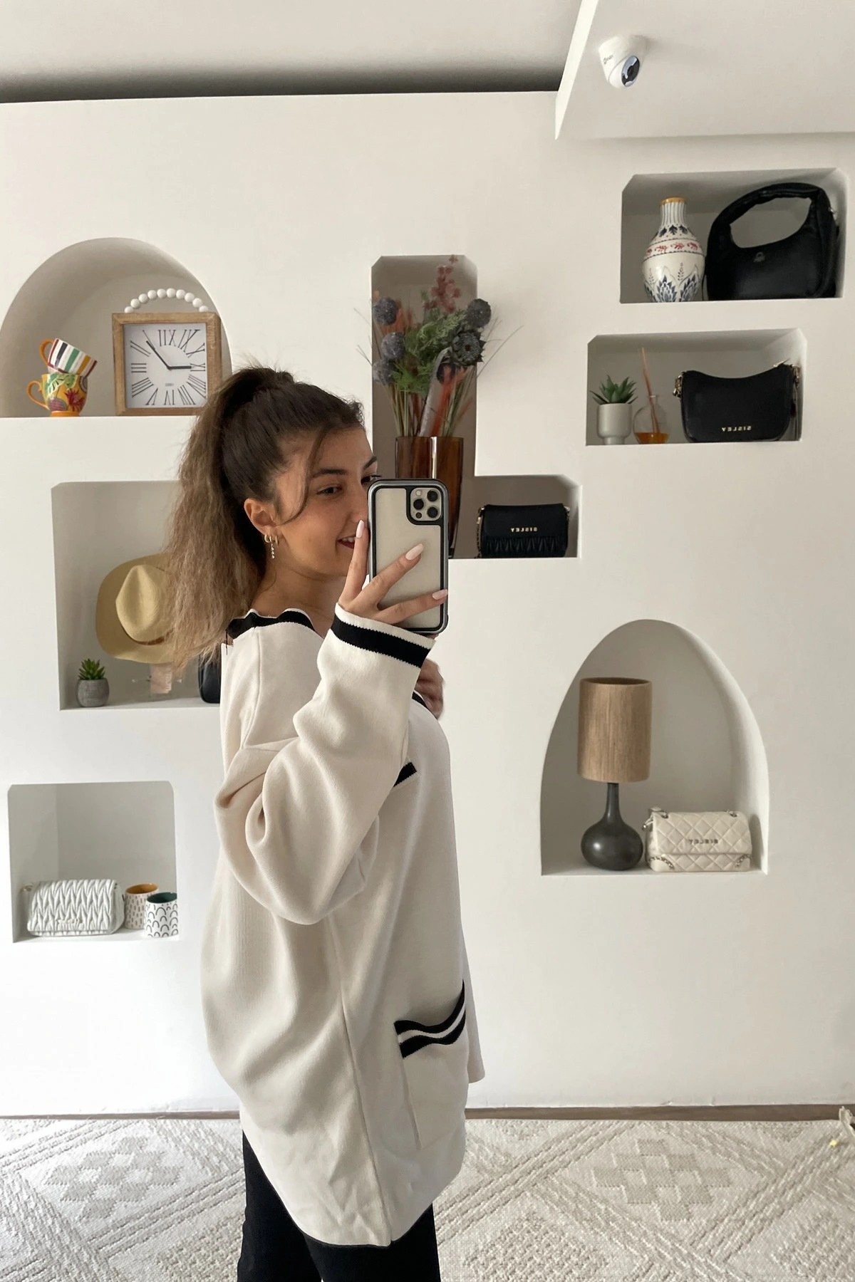 V YAKA CEP YAKA BİYE DETAY SALAŞ HIRKA – KREM
