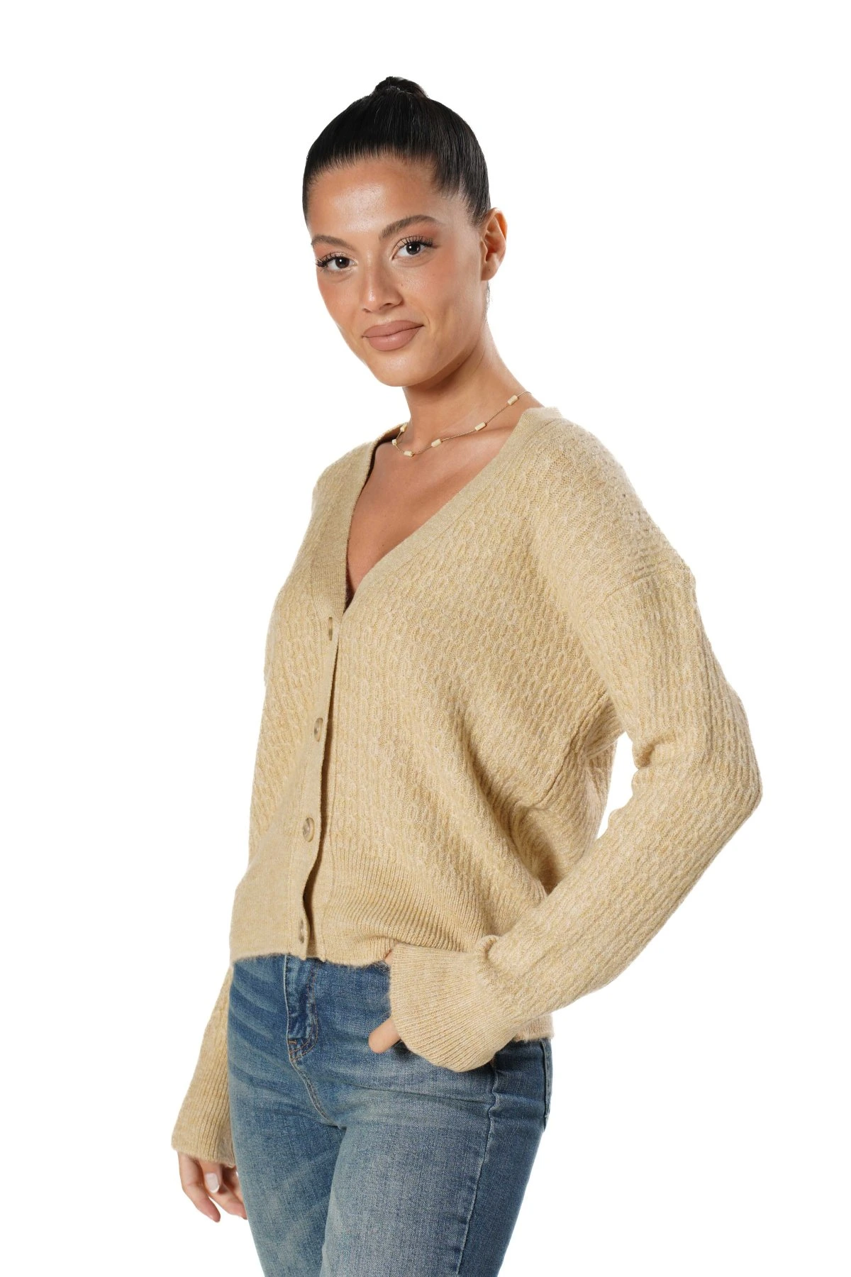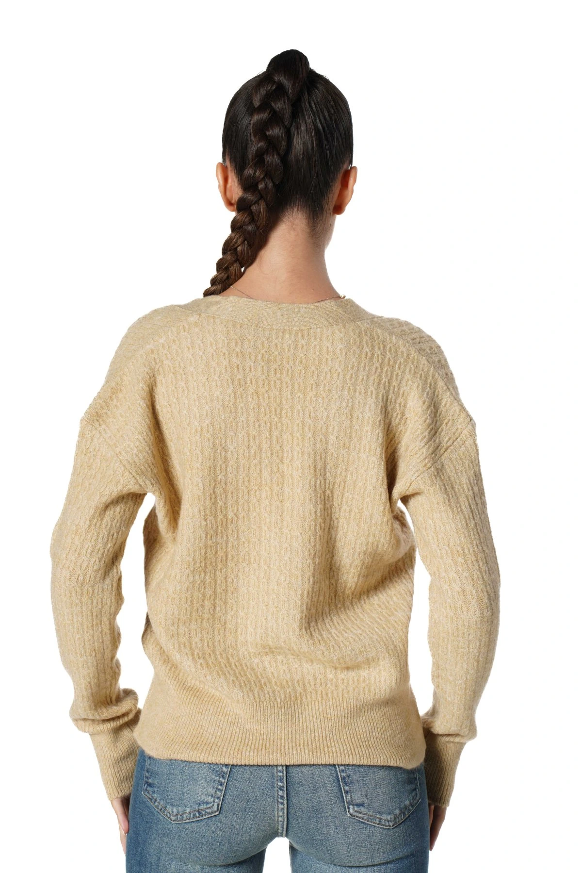 V YAKA İNCE BURGU KEMİK DÜĞME HIRKA – BEJ
