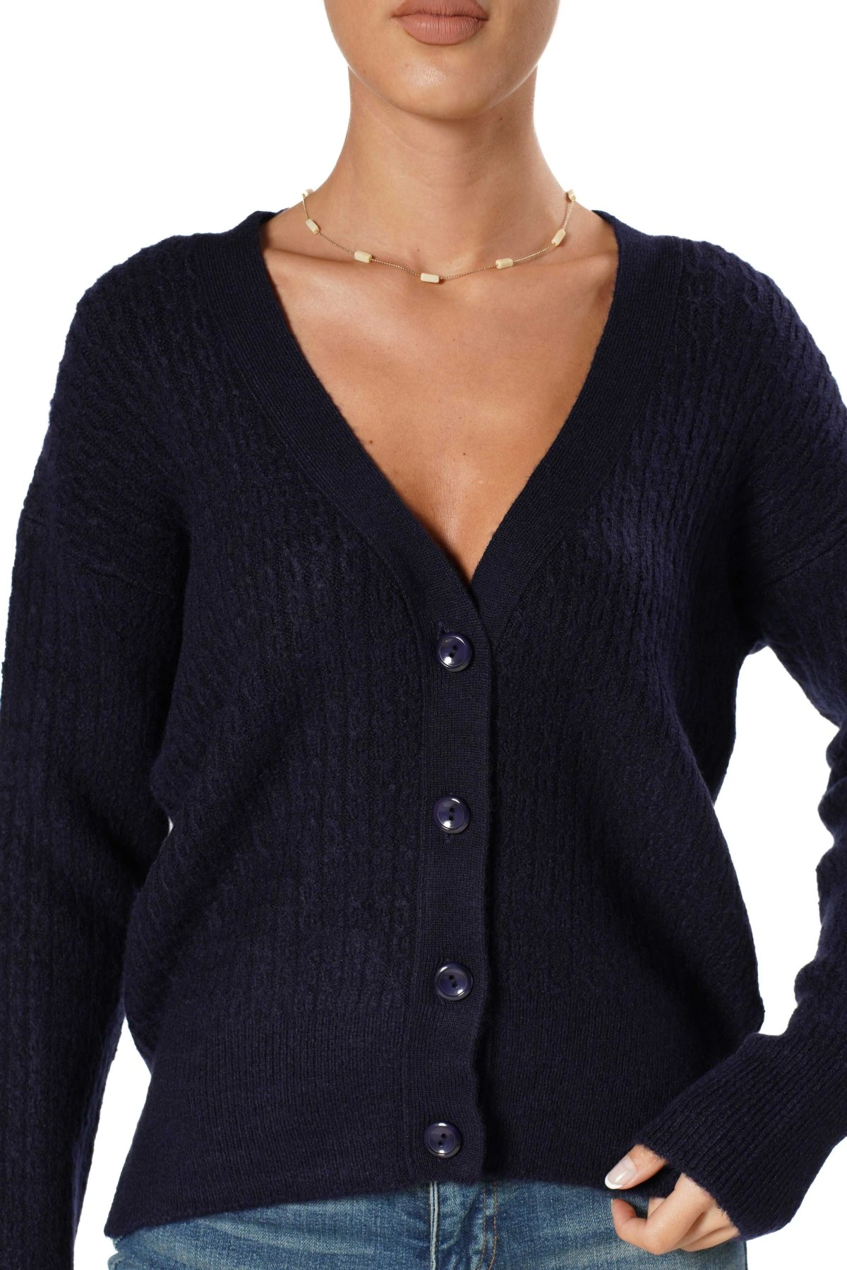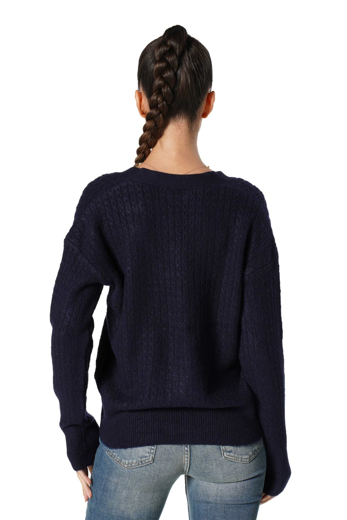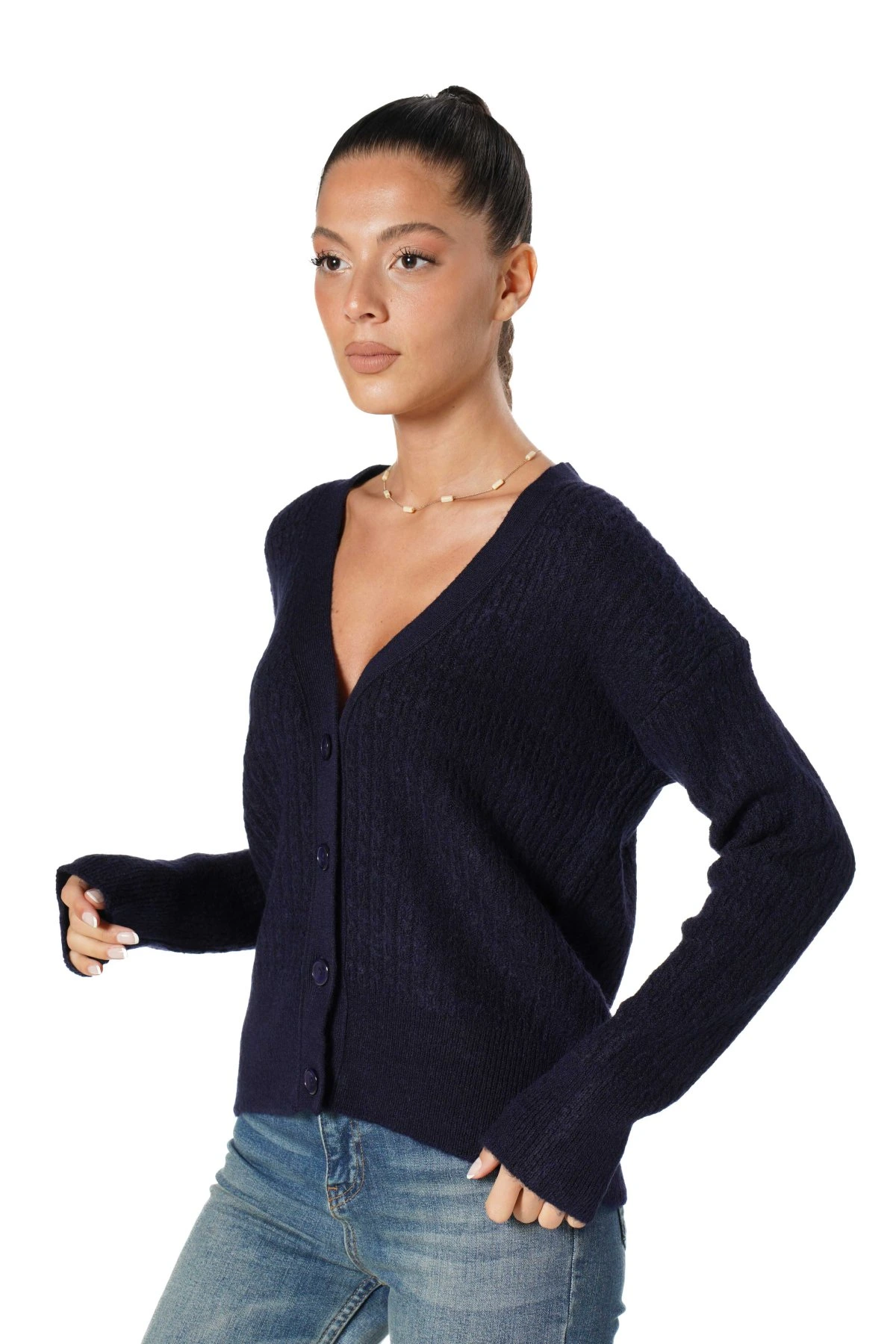 V YAKA İNCE BURGU KEMİK DÜĞME HIRKA – LACİVERT