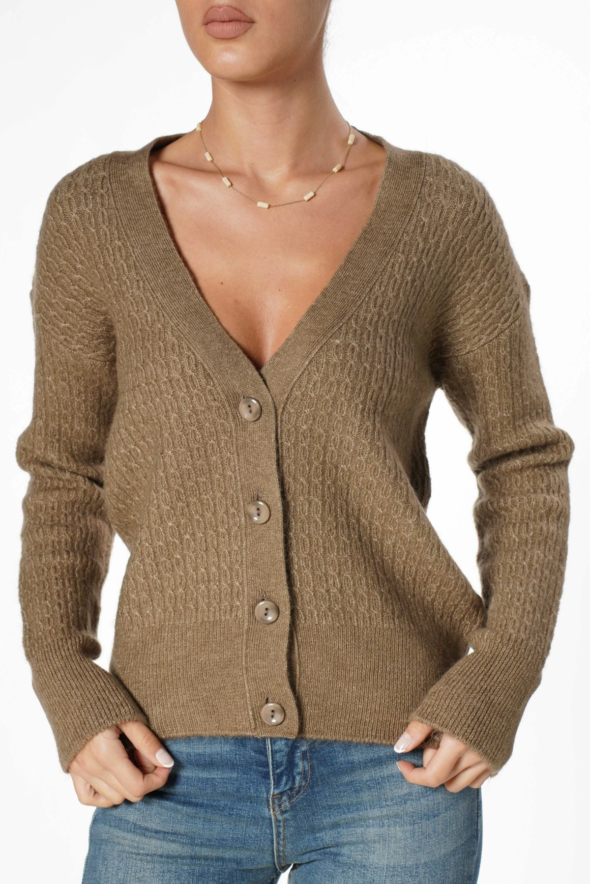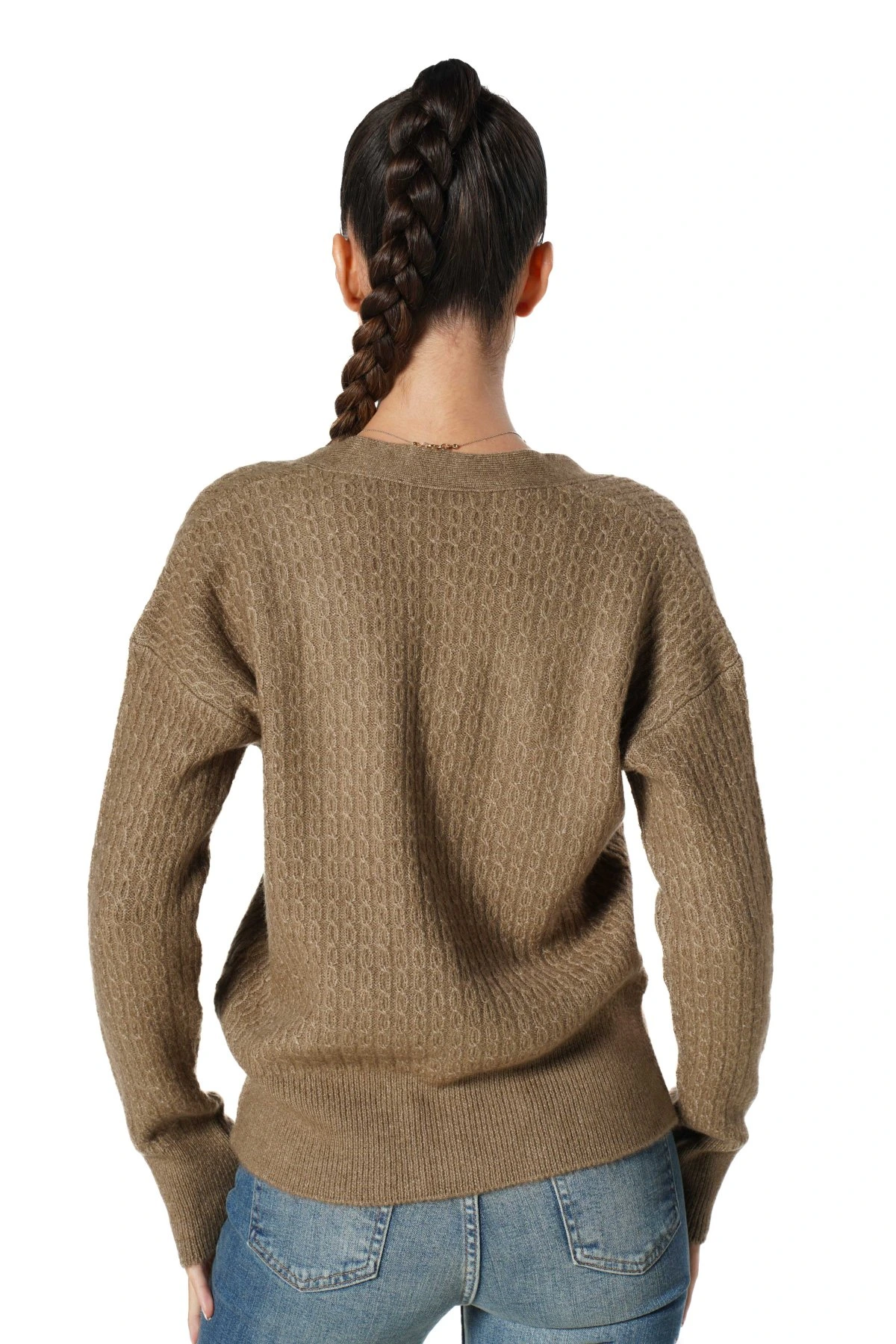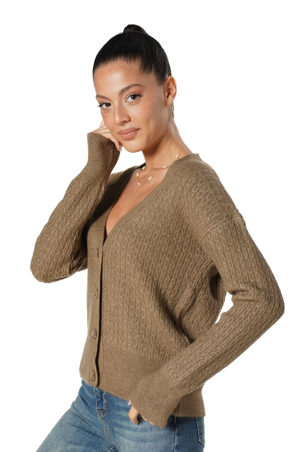 V YAKA İNCE BURGU KEMİK DÜĞME HIRKA – LATTE