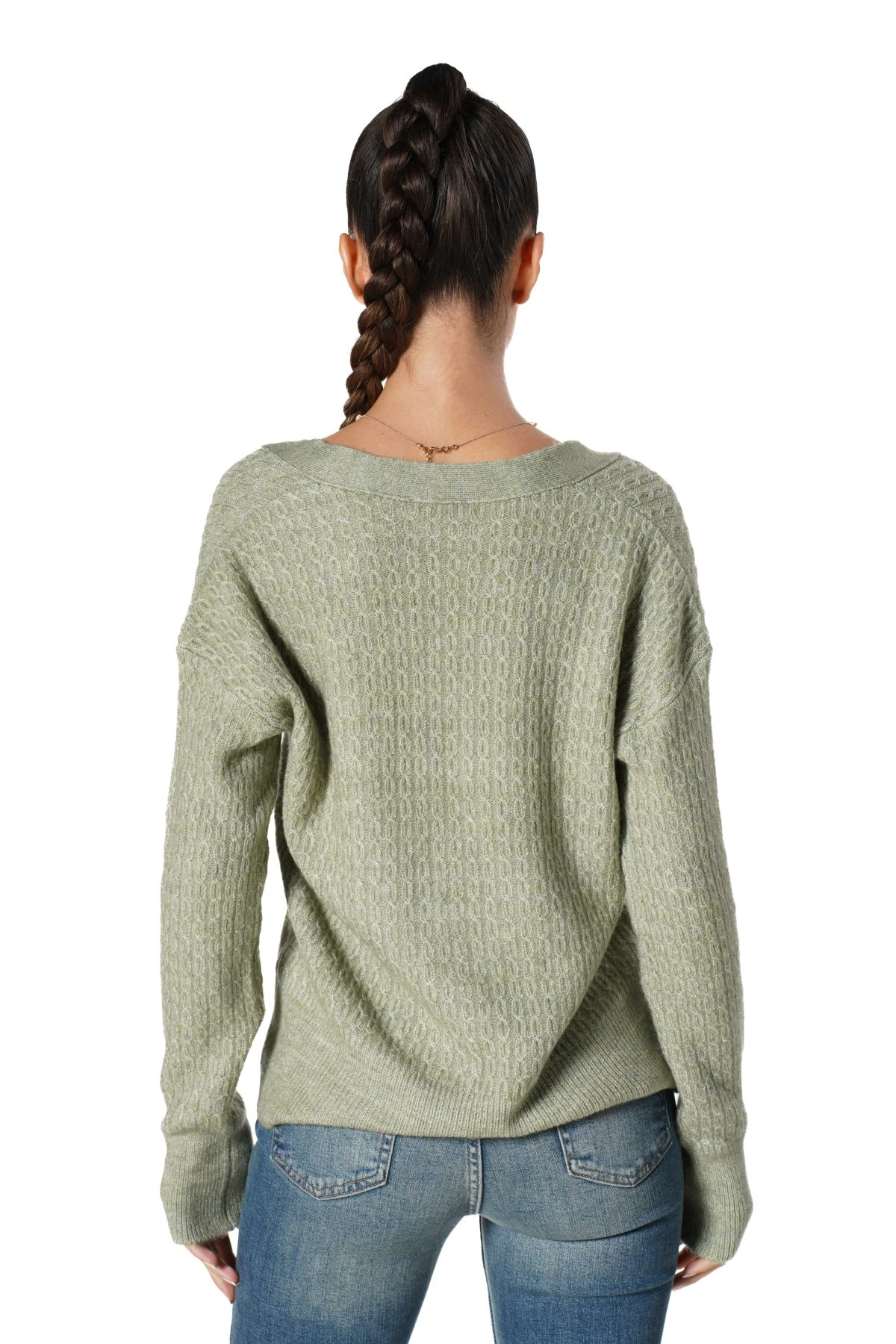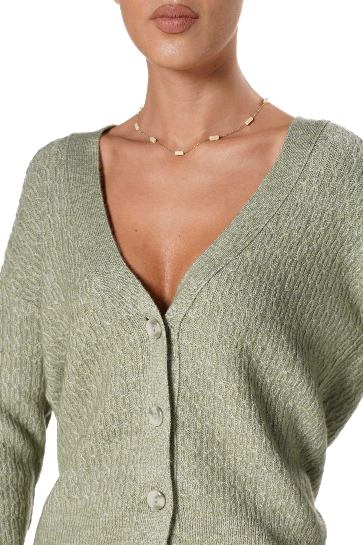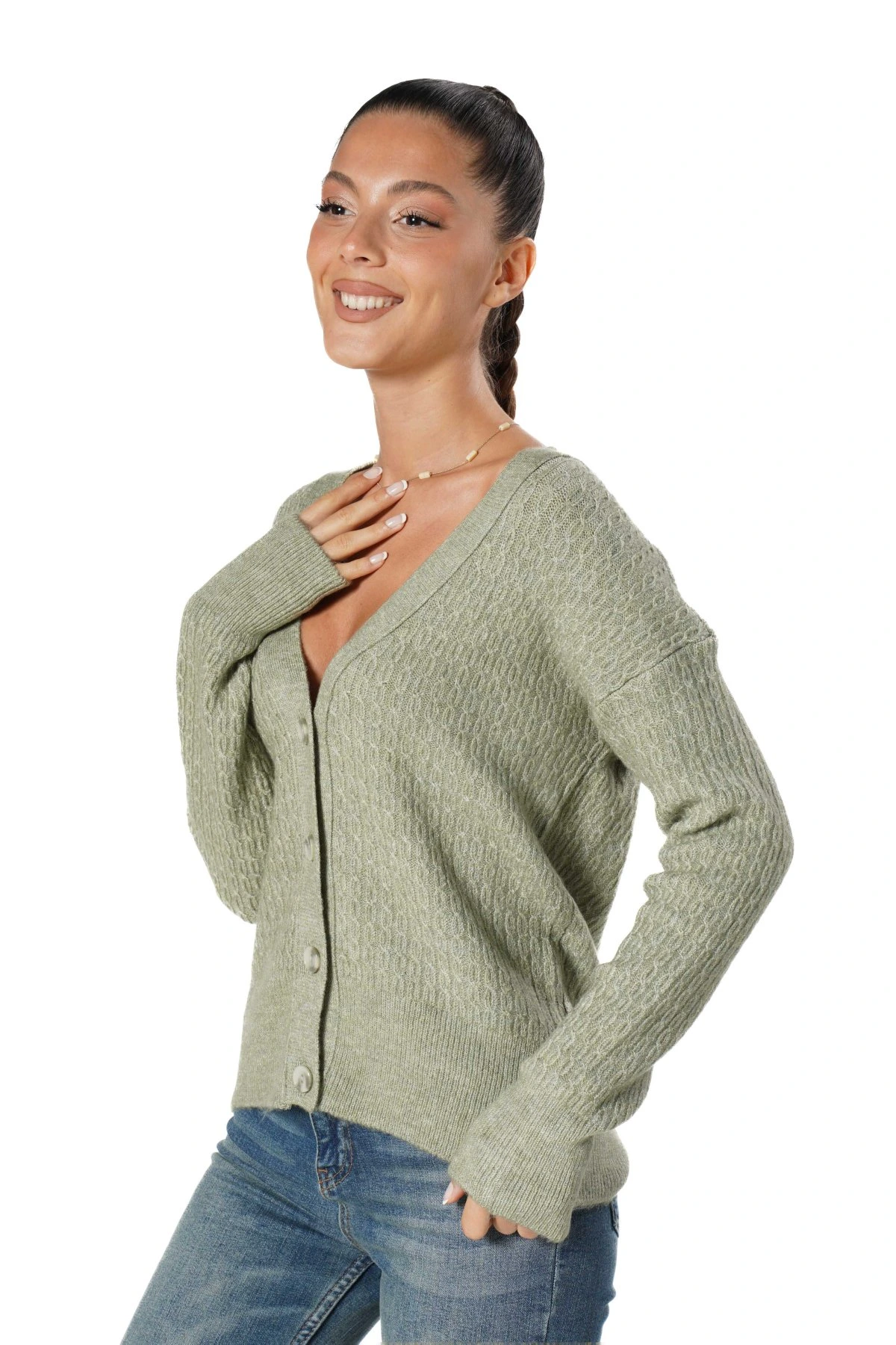 V YAKA İNCE BURGU KEMİK DÜĞME HIRKA – MİNT YEŞİLİ