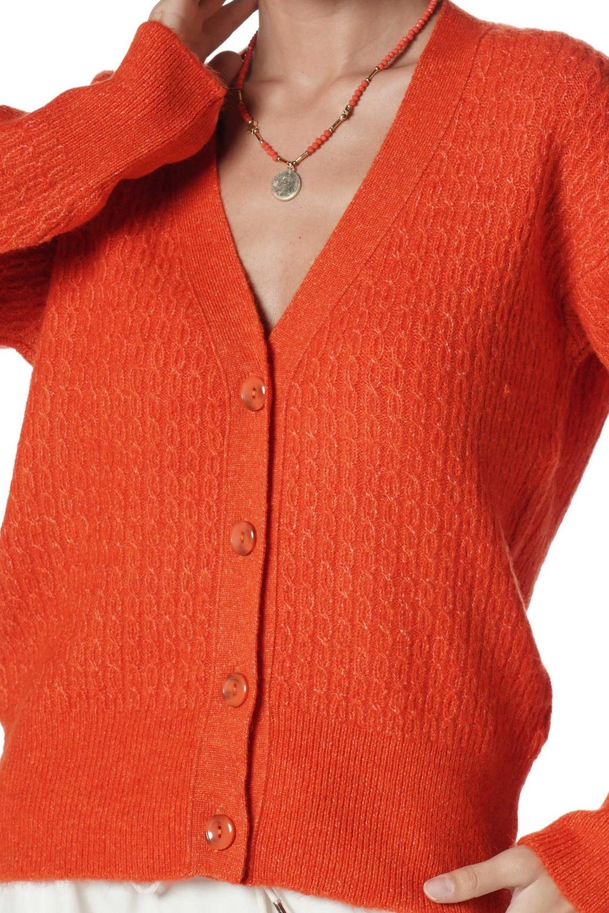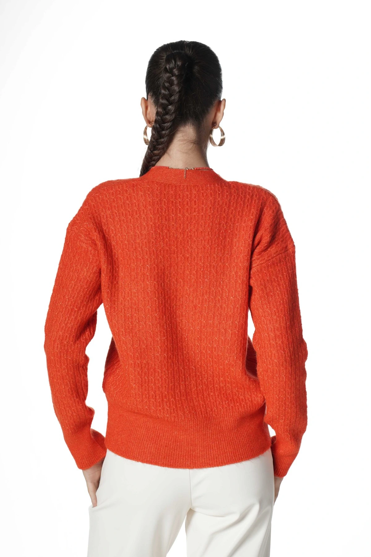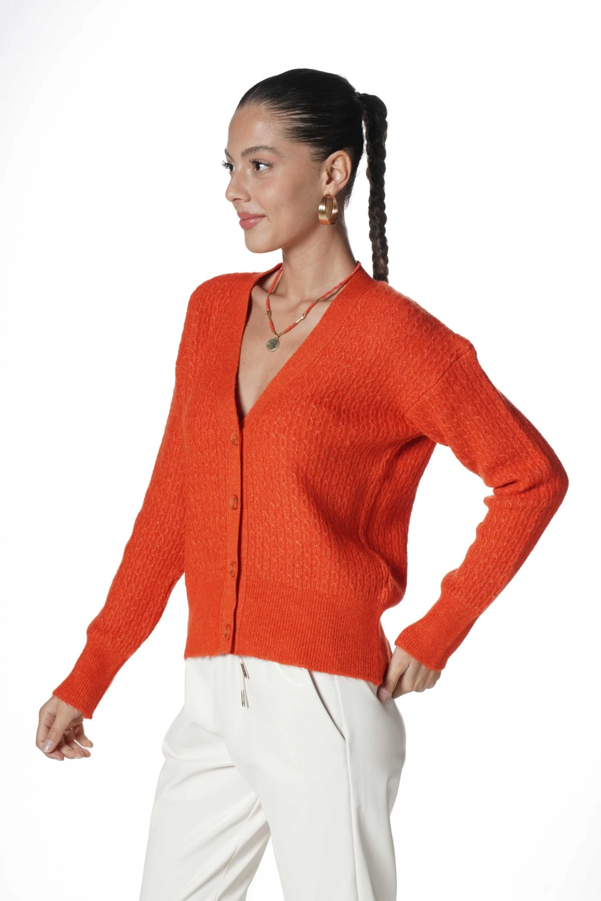 V YAKA İNCE BURGU KEMİK DÜĞME HIRKA – ORANGE
