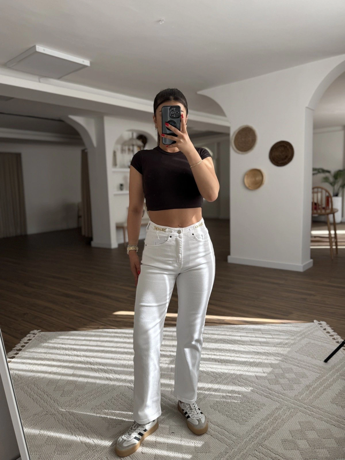 COS BEL GOLD AKSESUAR DETAY YÜKSEK BEL JEAN – BEYAZ